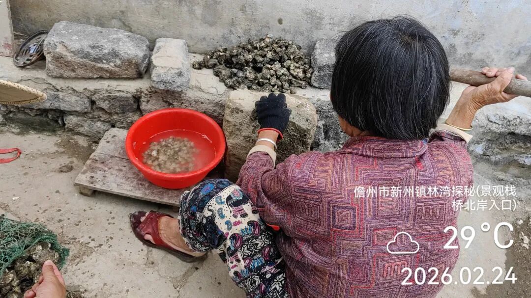村头一妇人在铛铛铛地撬开生蚝剥壳取肉,看到我们好奇的样子,她说,“这有什么好看。”