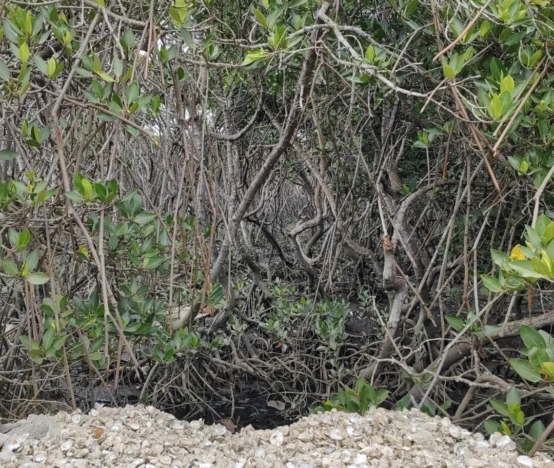 村头生蚝壳堆出来了一个小操场,这个操场的面积应该还会日复一日的增加,推搡着红树林的生长空间,并有排放的污水,丢弃的垃圾散发出腥热恶臭,而作为“海岸卫士”红树林却依然维持自己的生机勃勃,真是神奇。