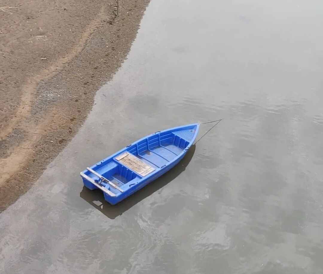 一叶小舟在水中荡啊荡。