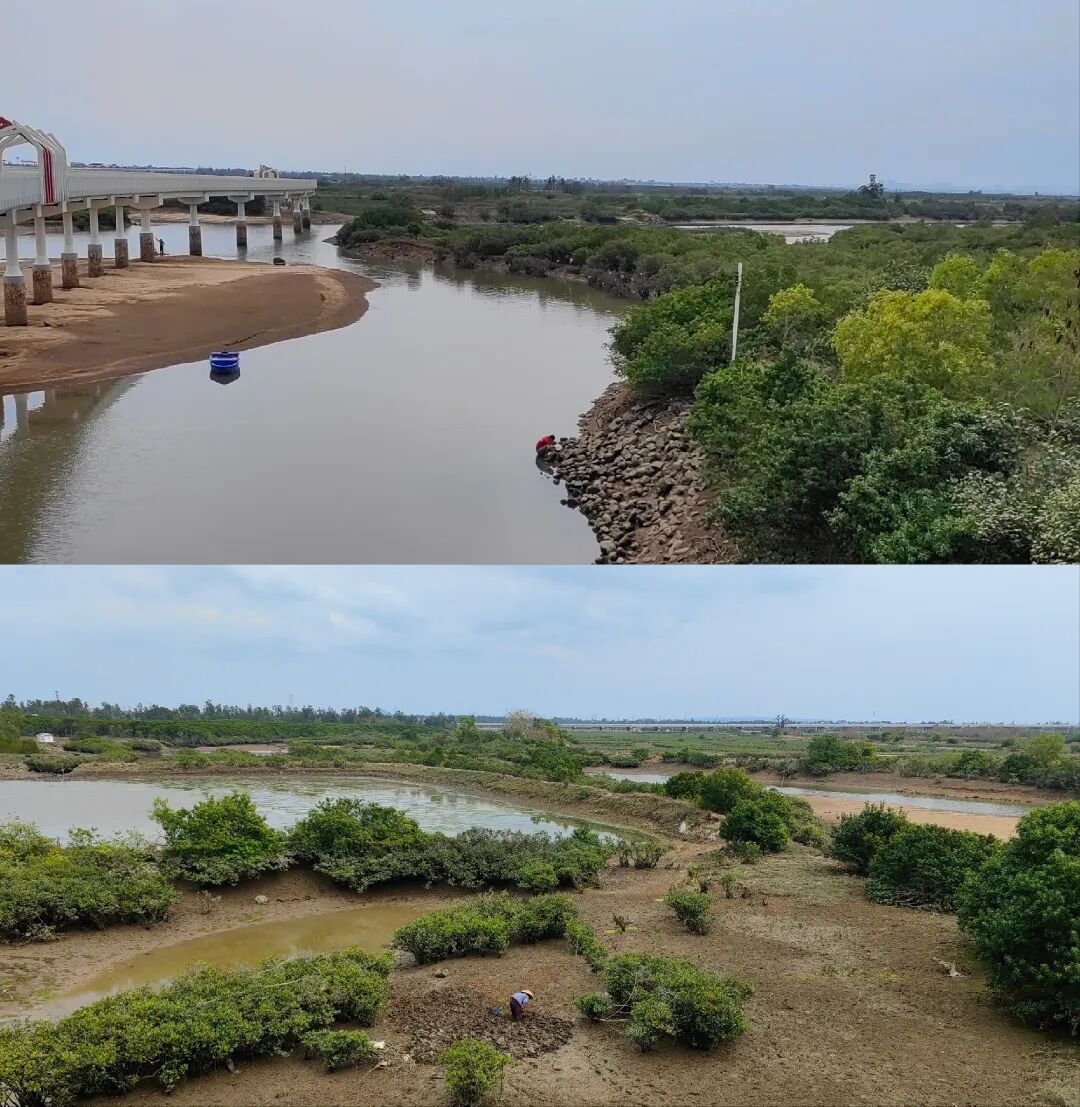 这么整整齐齐的规模宏大的小红树林应该是人工育苗。