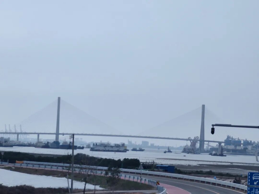 遥遥望见洋浦大桥,前行,再向左望,那是出发的地方。 总是归途如虹。
