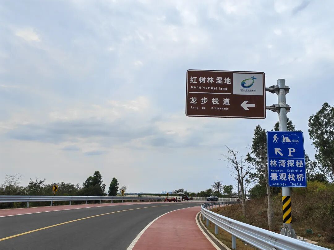 新的环岛旅行公路,环新英湾支线,2025年11月5日通车,途经洋浦经济开发区、木棠镇、新州镇、白马井镇,这正是我们的行路线。新路新植有木棉树、黄花风铃木,靓丽婉如佳人,一条完美的儋州湾环线。