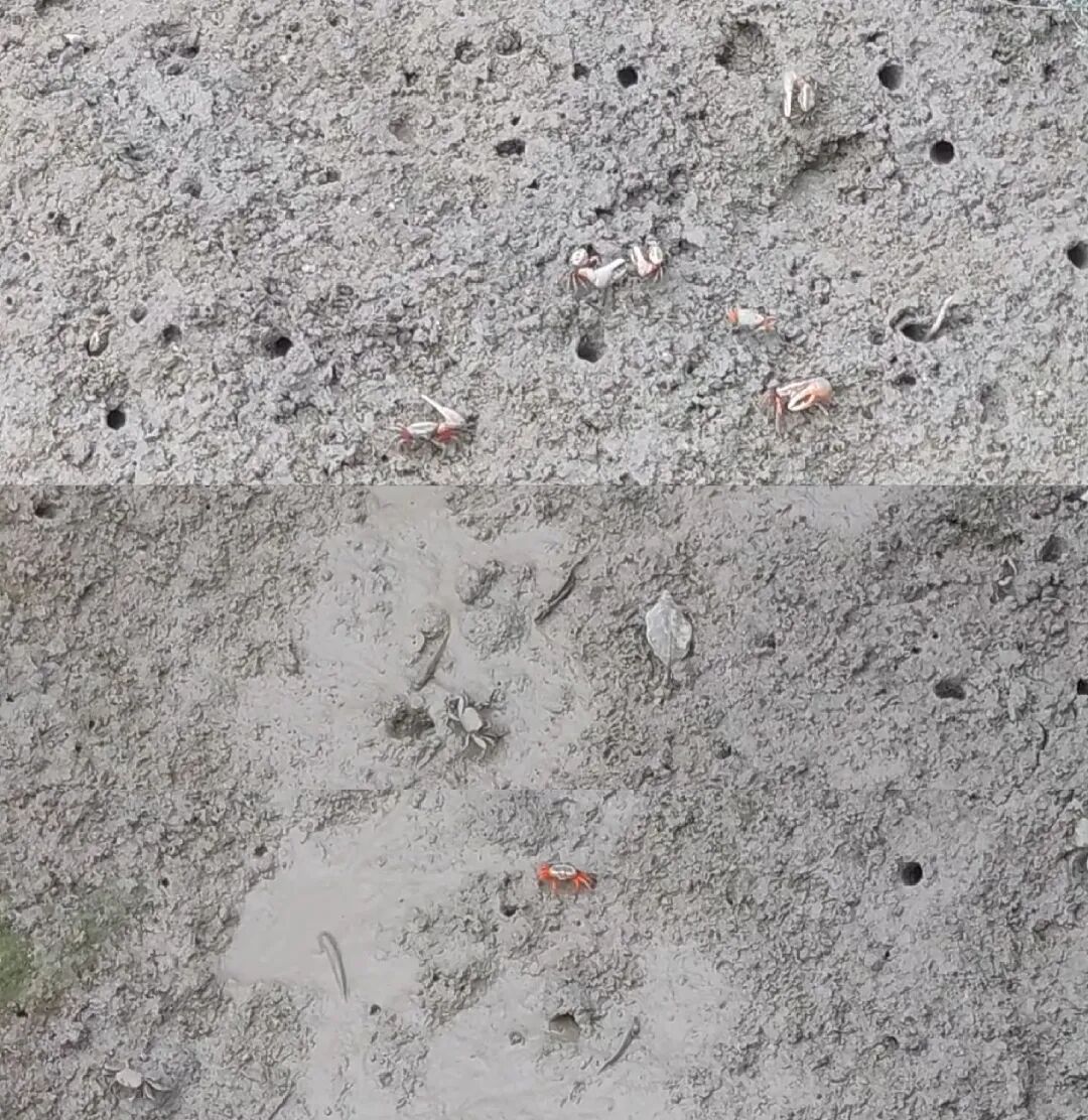 滩涂上活跃着招潮蟹、红抓蟹、弹涂鱼……,它们应该也是为了生活而劳作吧。