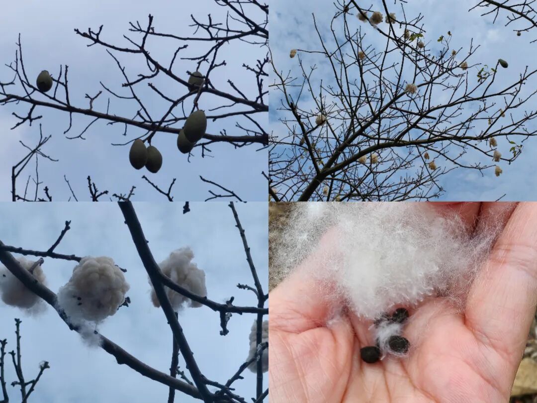 果熟自然开裂,太像棉花了。 捡几个蒂落的种子,带回去,试看能不能异植中原。