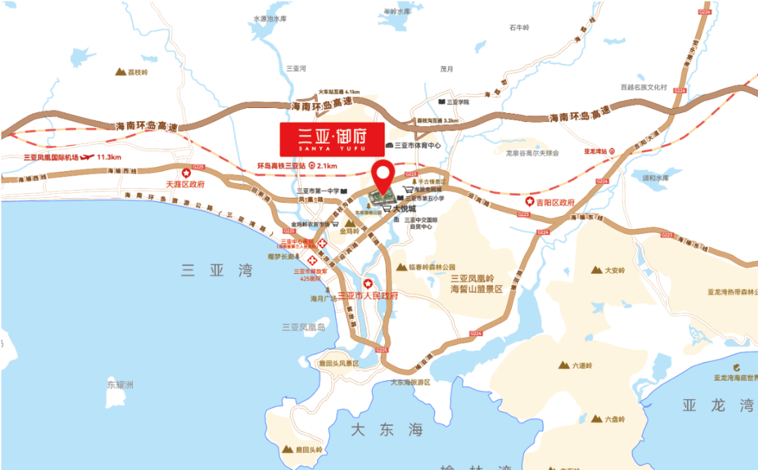 约2.2km内可达环岛高铁-三亚站