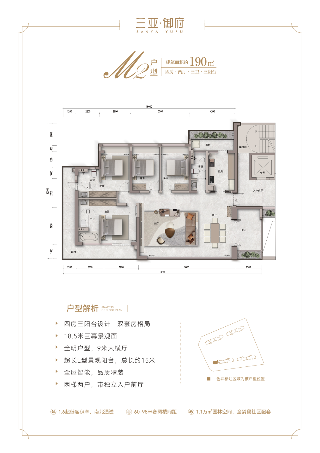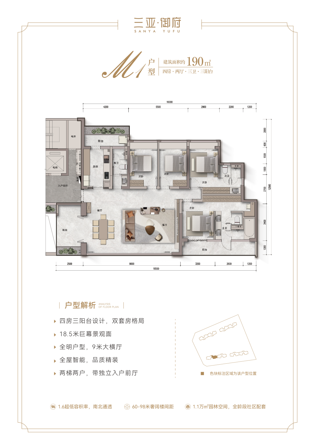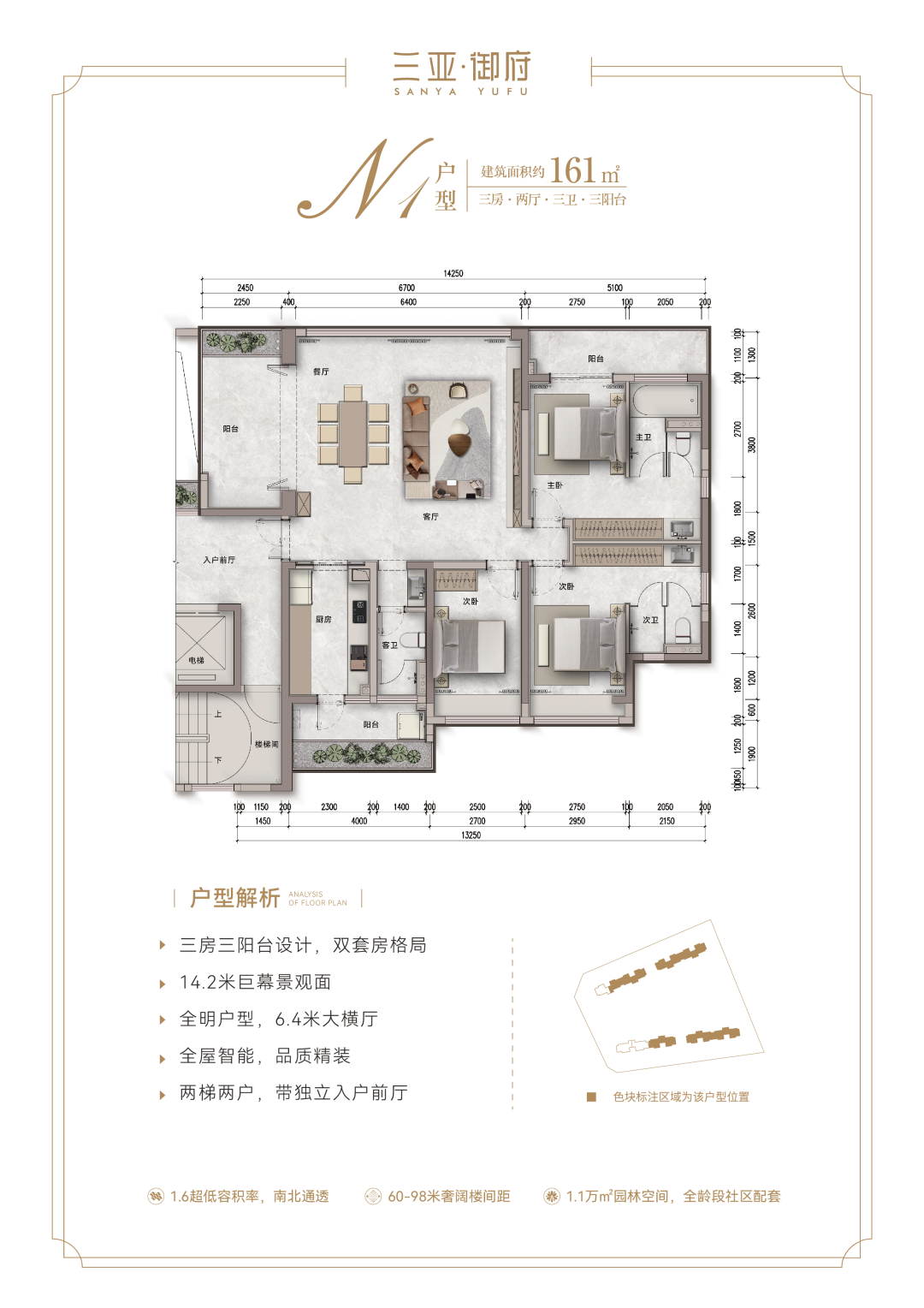 【产品面积】:161㎡、169㎡、190㎡大平层