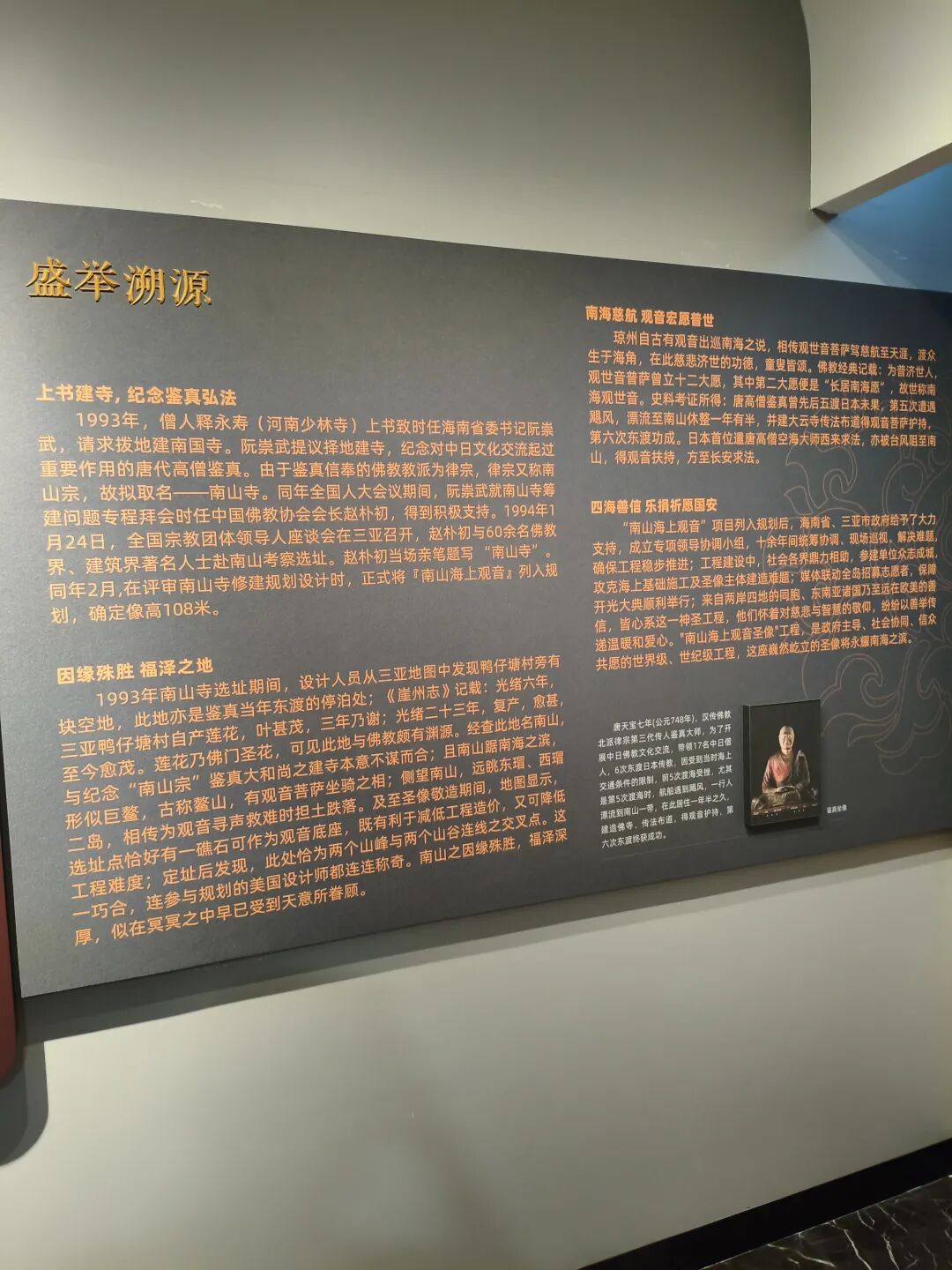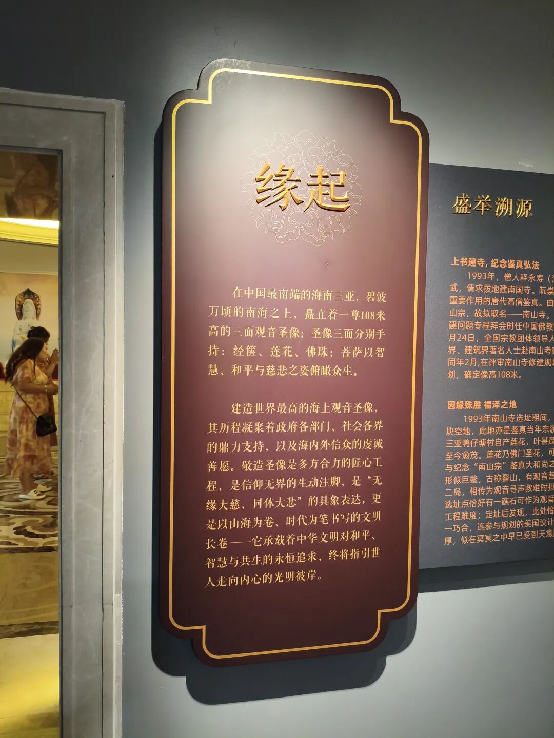 再朝里探究,一处标题“缘起”的展厅,居然是这处108米菩萨雕塑建设的前因后果,起因是什么,谁推动的,怎么设计的?为什么这么设计?有关建筑工程力学、玄学、风水学!整个过程的大事记,有兴趣的朋友可以点击放大图片分享。
