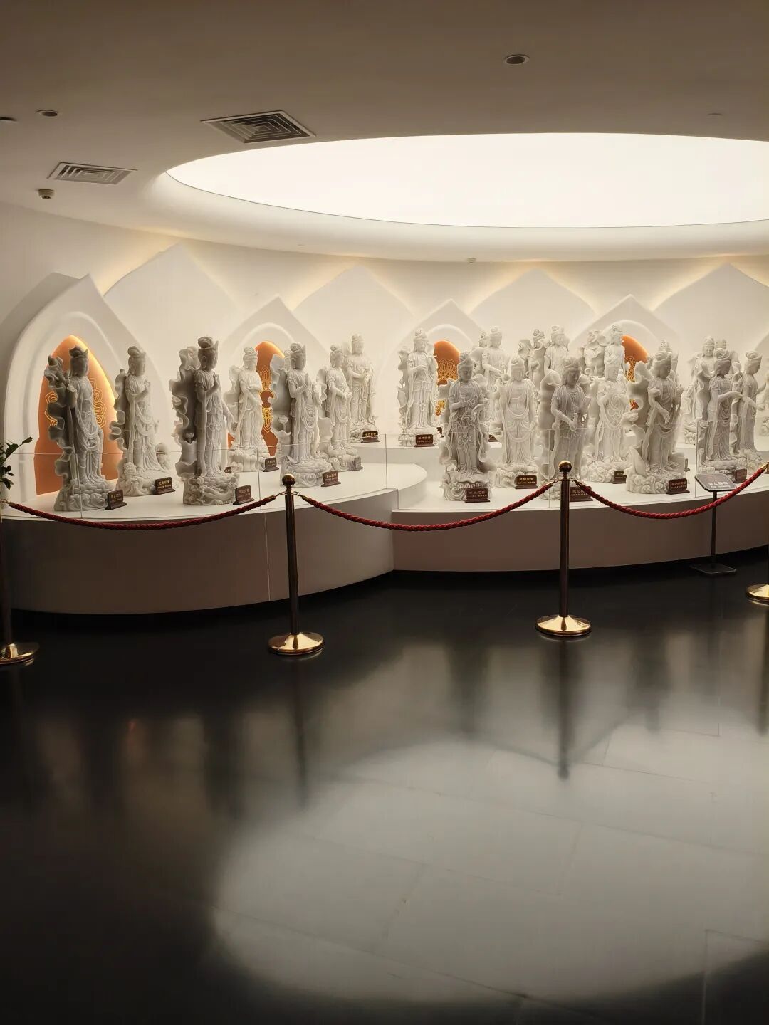 下楼的时候,拐角一处展厅,竟然摆放了108鐏活灵活现,形态各异的玉雕菩萨佛像啊!真是艺术啊!