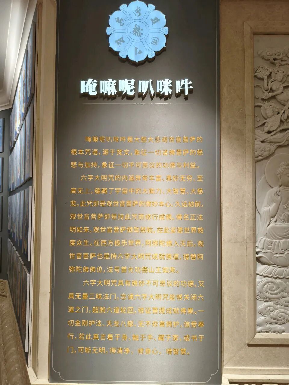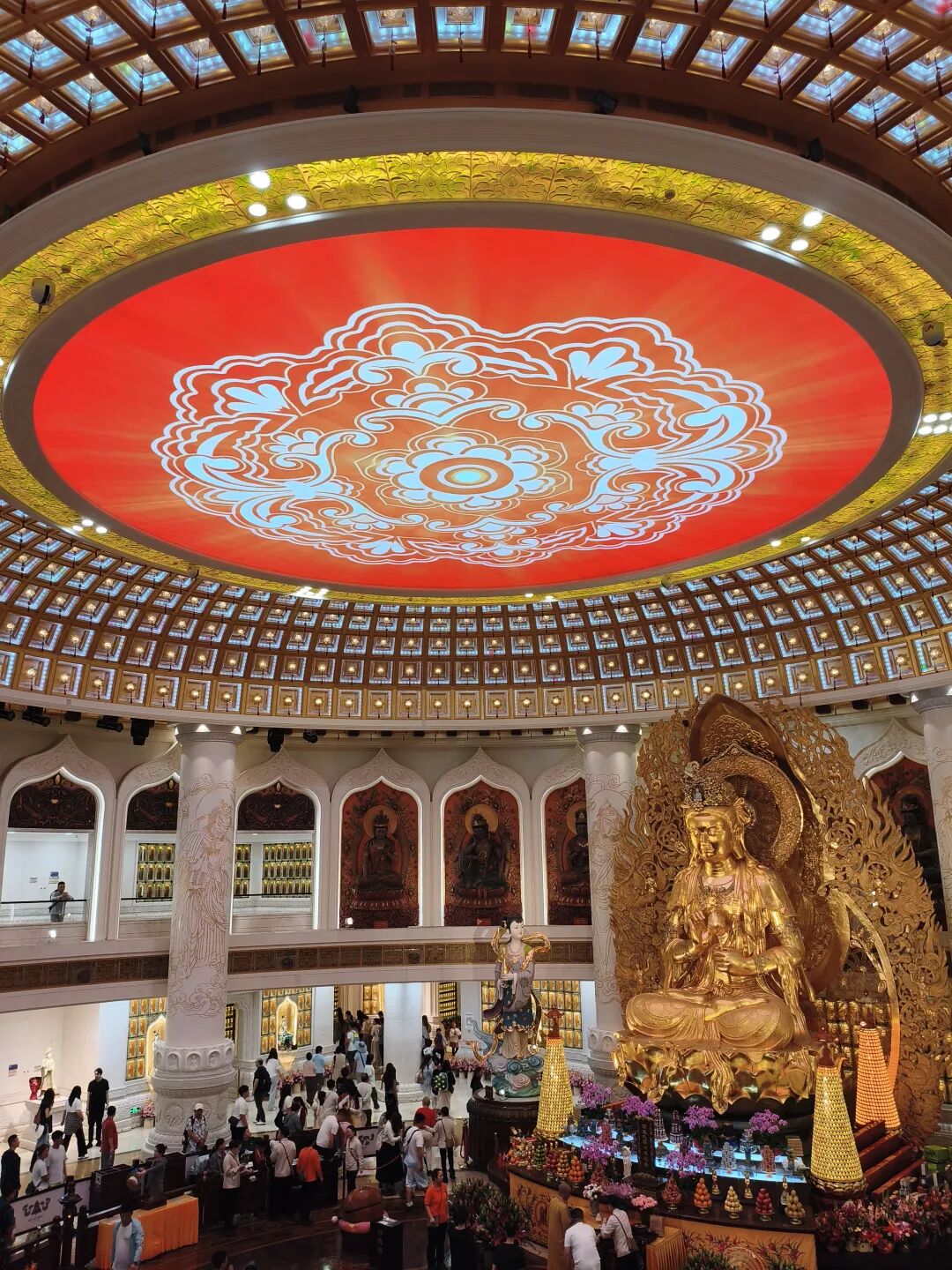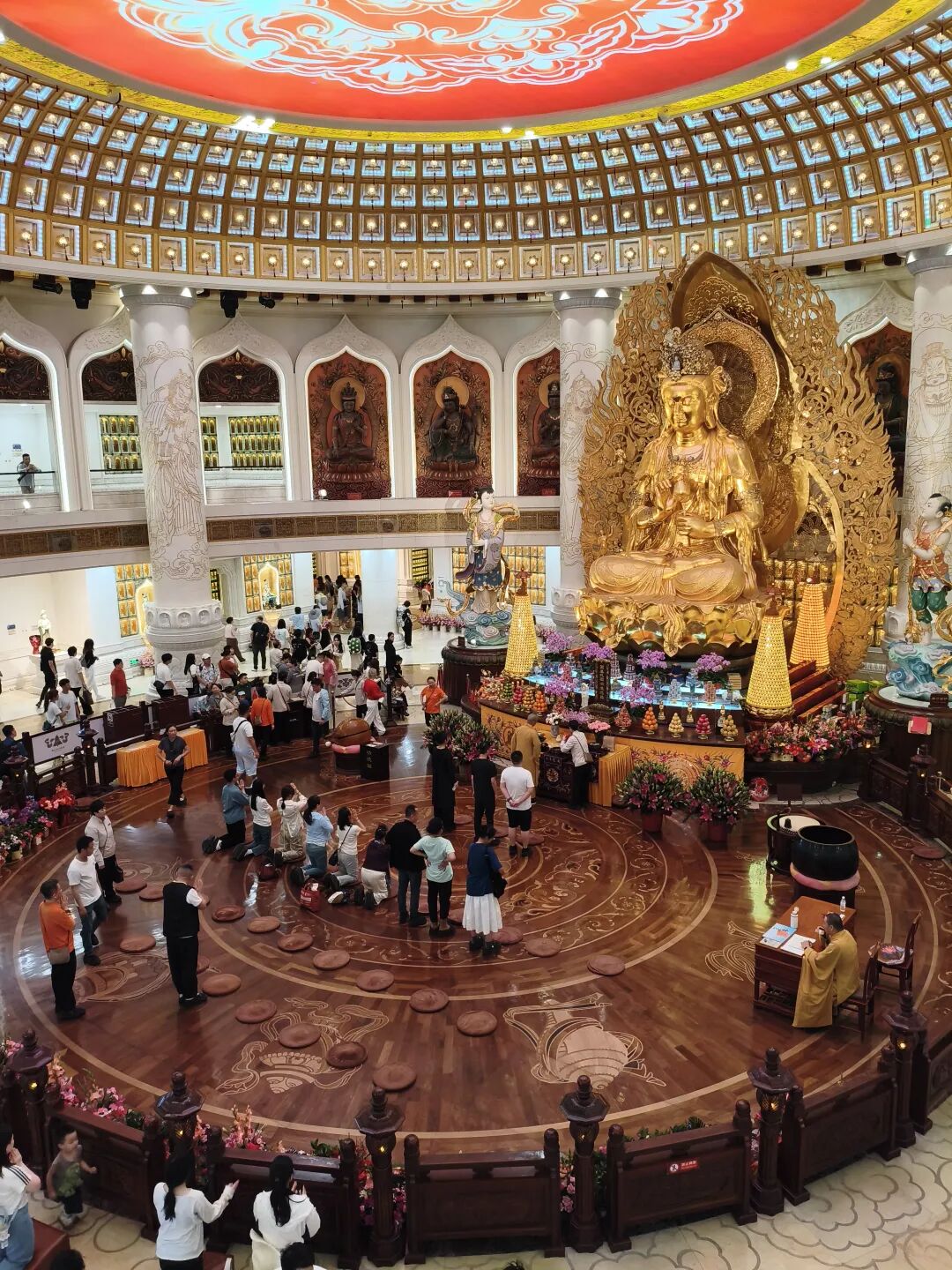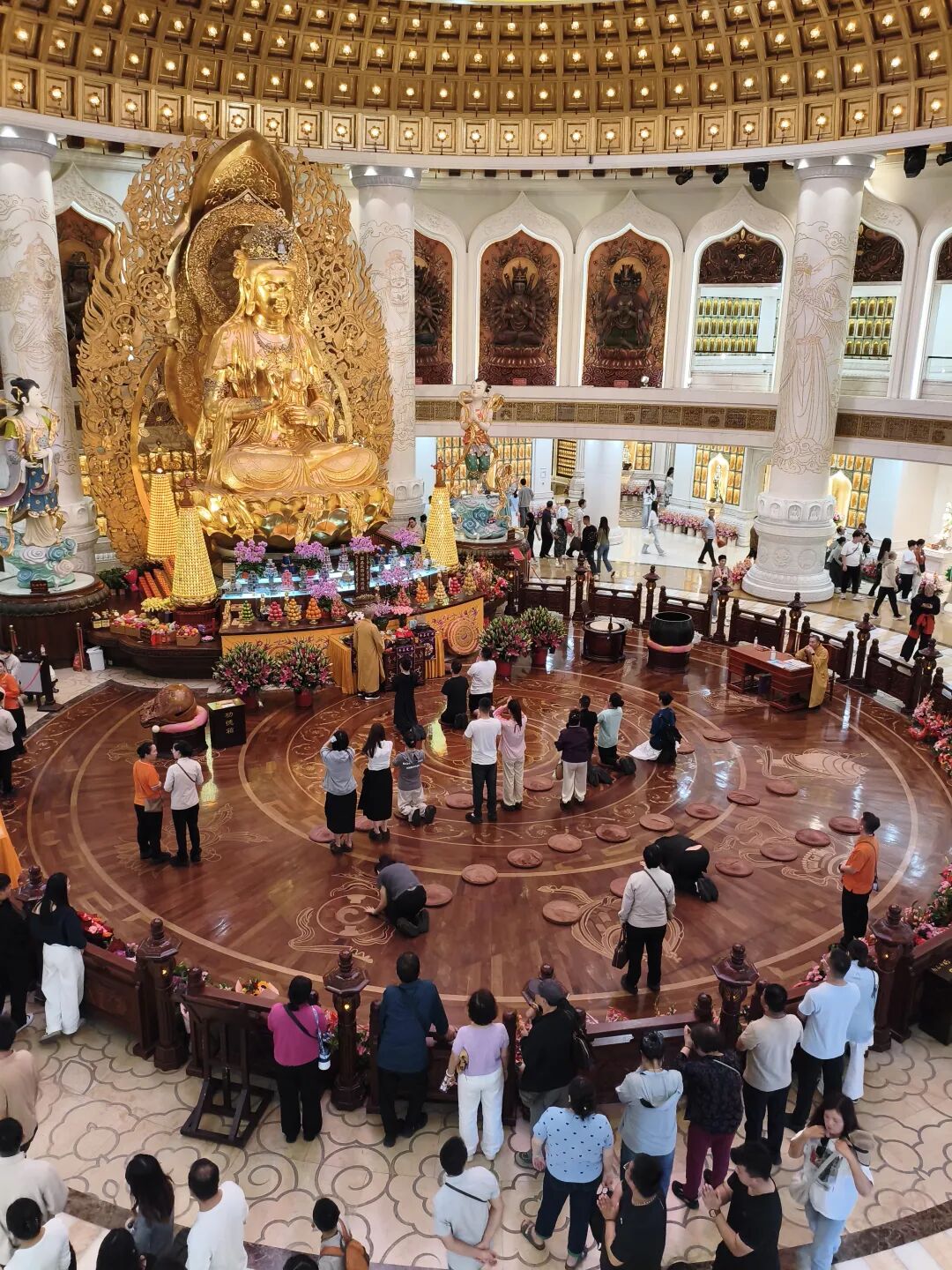 根据导游线路,进入大厅首先就是可以排队进入接受佛音洗礼,仪式感满满的,满足了信徒心灵的慰藉。接着顺着导向指示,步行楼梯到四层,有个周转空间,墙壁上有一面景区介绍“顶礼佛足”。也正是看了这上边的介绍,才有了上去之后的顶礼佛足仪式感满满;当看到大部分人有样学样,学得四不像的样子,又不禁觉得世间又何尝不是如此?有的人兢兢业业,奋斗一生,终有成就,或是精神成就,或是事业成就,再或者财富和权力的成就;更多的人却是碌碌无为一生,稀里糊涂的来,稀里糊涂的去。