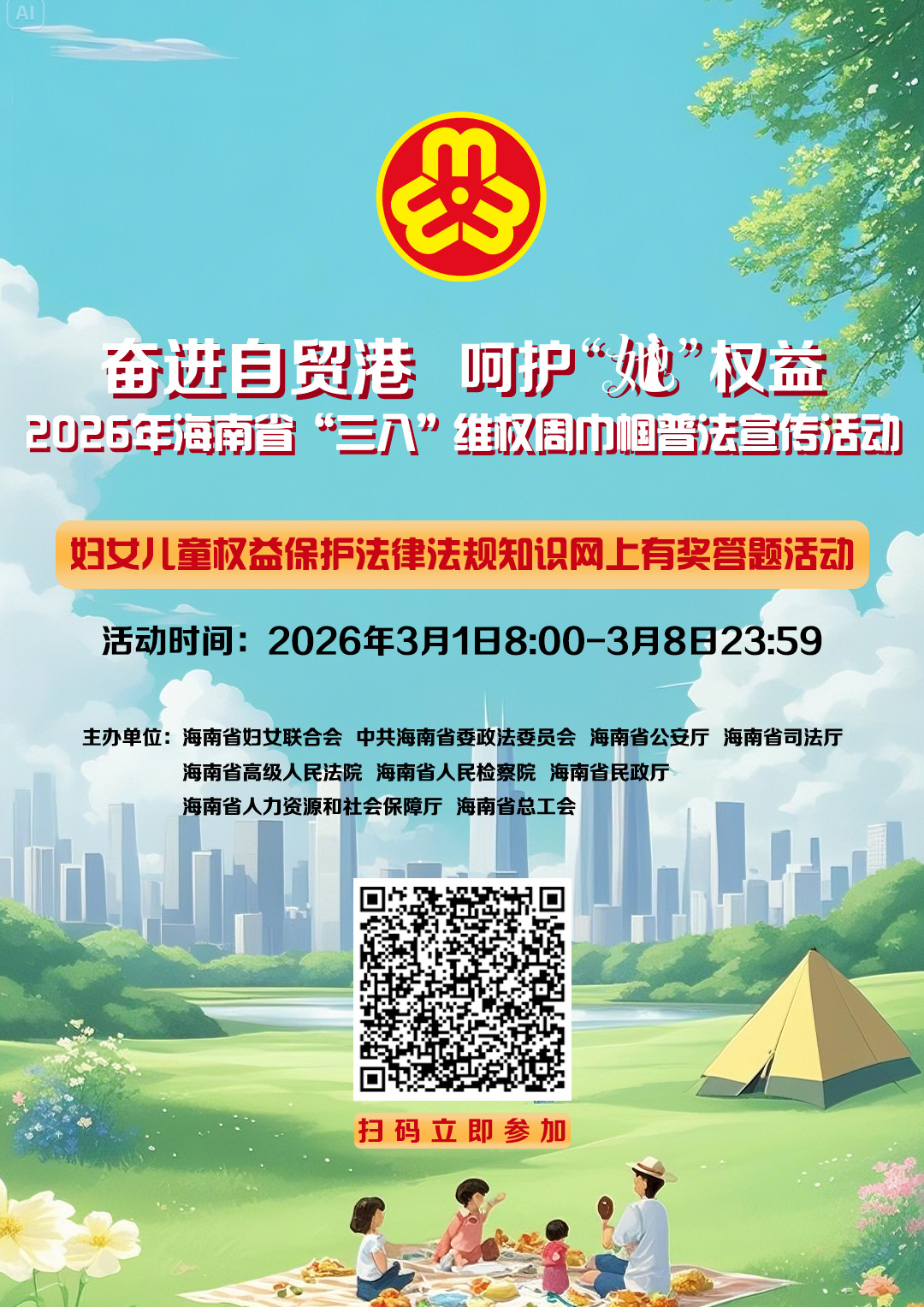齐参与 | 2026年海南省“奋进自贸港 呵护'她'权益”“三八”维权周相关法律法规知识网上有奖竞答活动