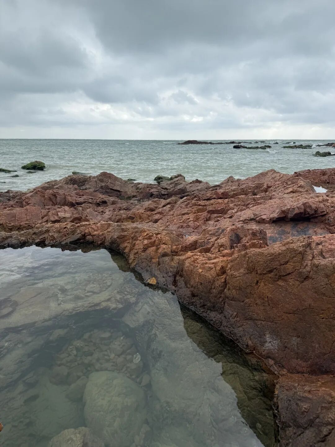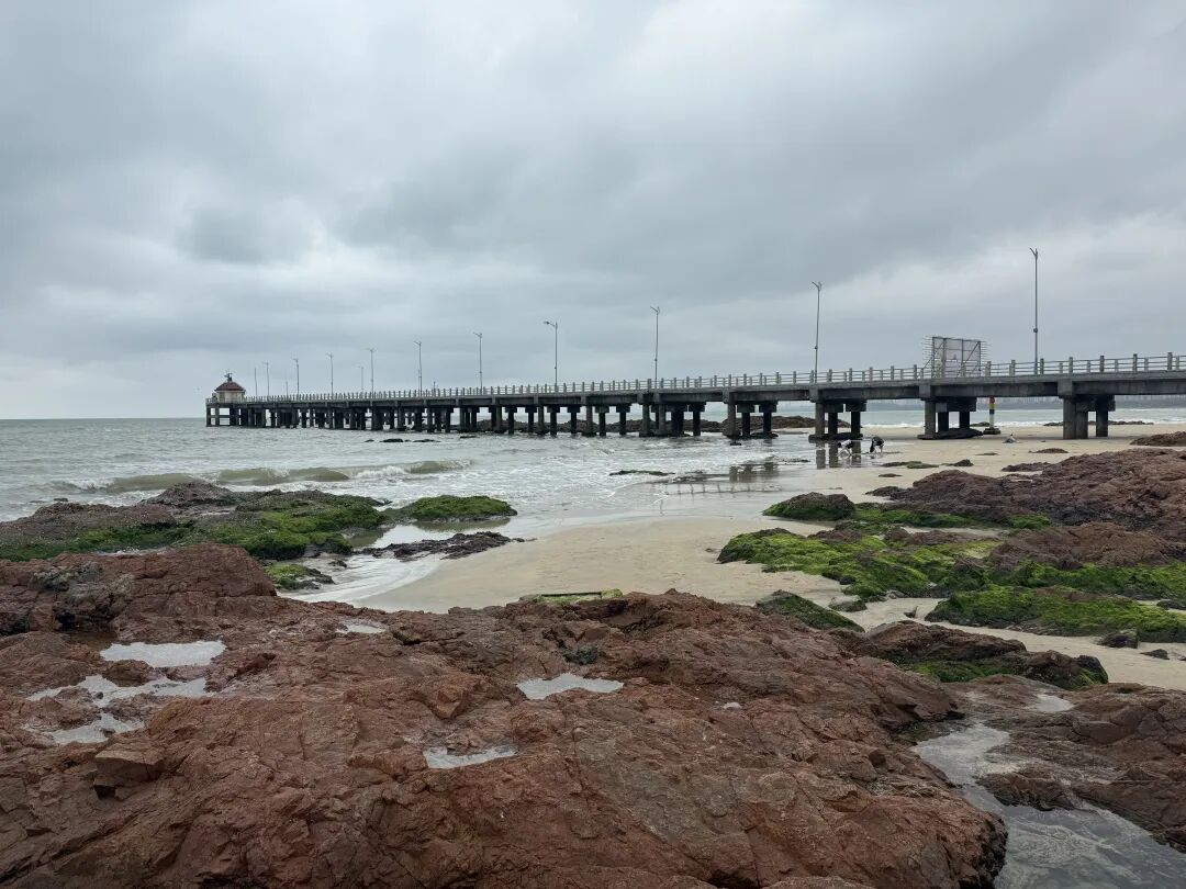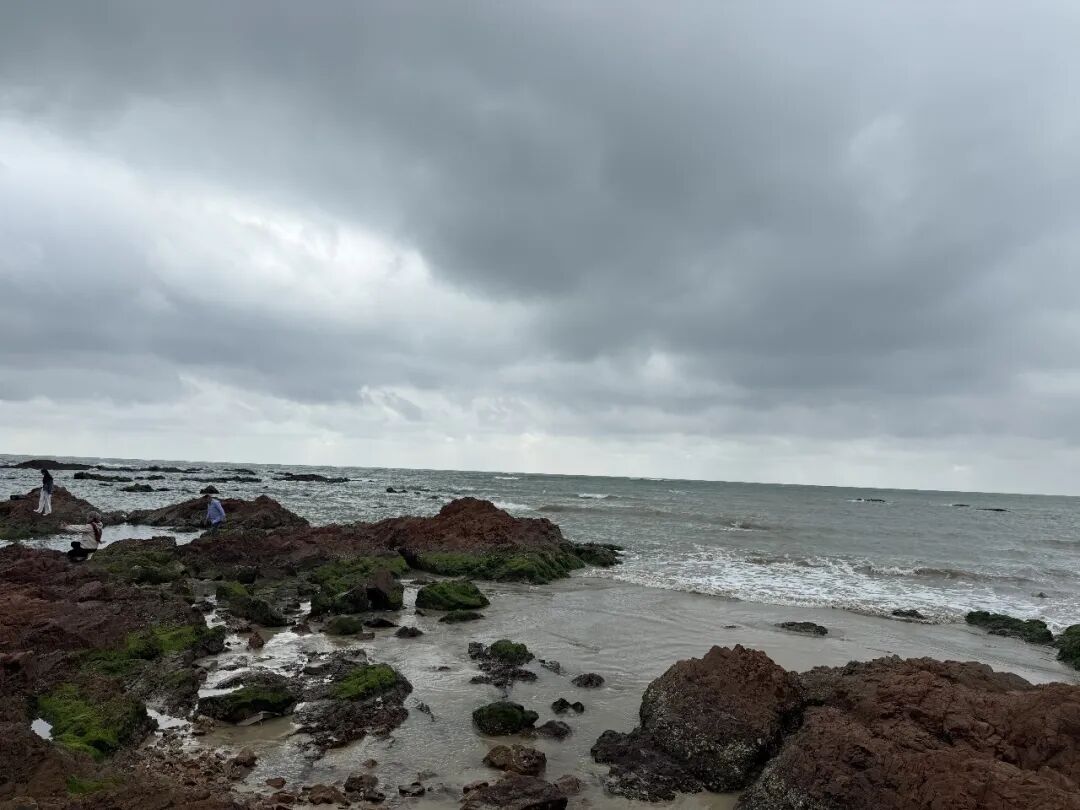 二、博鳌的野生景点和拾贝野趣1.红石滩礁石是红色的,人少,适合亲子,带着小孩提着小桶捡贝壳挖小螃蟹可以玩儿很久,我们去的时候是阴天,海边风大,2月份需要穿件外套。