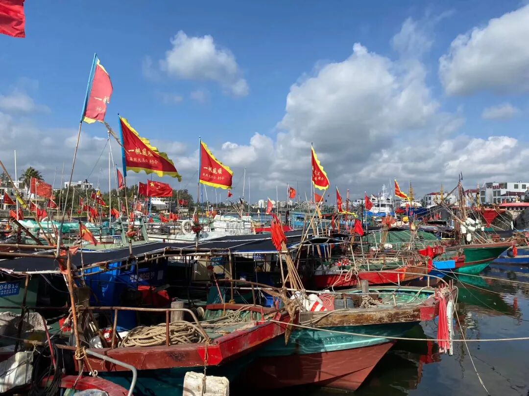潭门渔港是千年渔港,位于潭门镇,可以看到带着国旗的渔船。渔港旁边有一个大的海鲜市场,你可以从海鲜市场买来随便找家大排档店加工,也可以直接在大排档一条街选家店吃,丰俭由人。