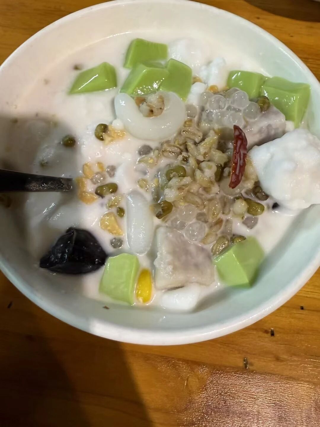 ,也像羊屎,吃第一口心里着实有点怵头,不过很Q,有嚼劲,有点点麻麻的味道。