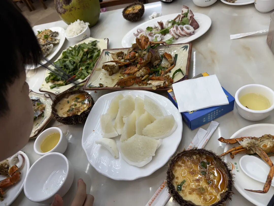 周边的人会开车专门来潭门渔港吃海鲜。