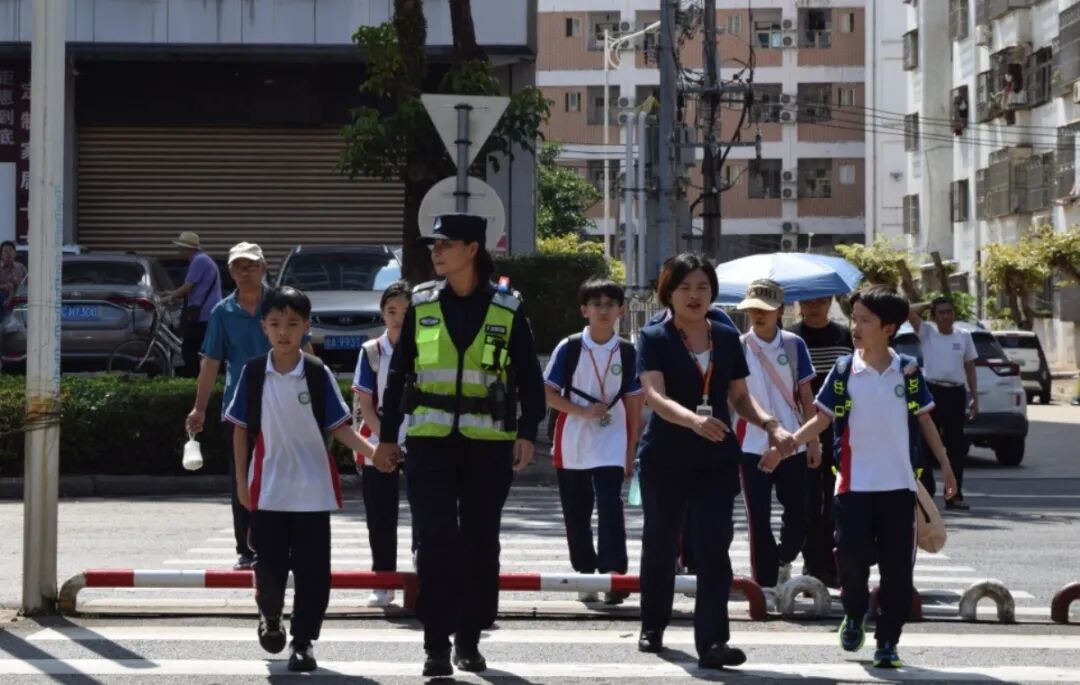 为进一步加强道路交通安全管理工作,努力营造辖区学校周边安全、文明、畅通的道路交通秩序,琼海公安交警多措并举,全方位、立体化做好新学期“护学”工作,切实保障保障辖区学校上下学期间交通安全,全力为学生平安成长保驾护航。