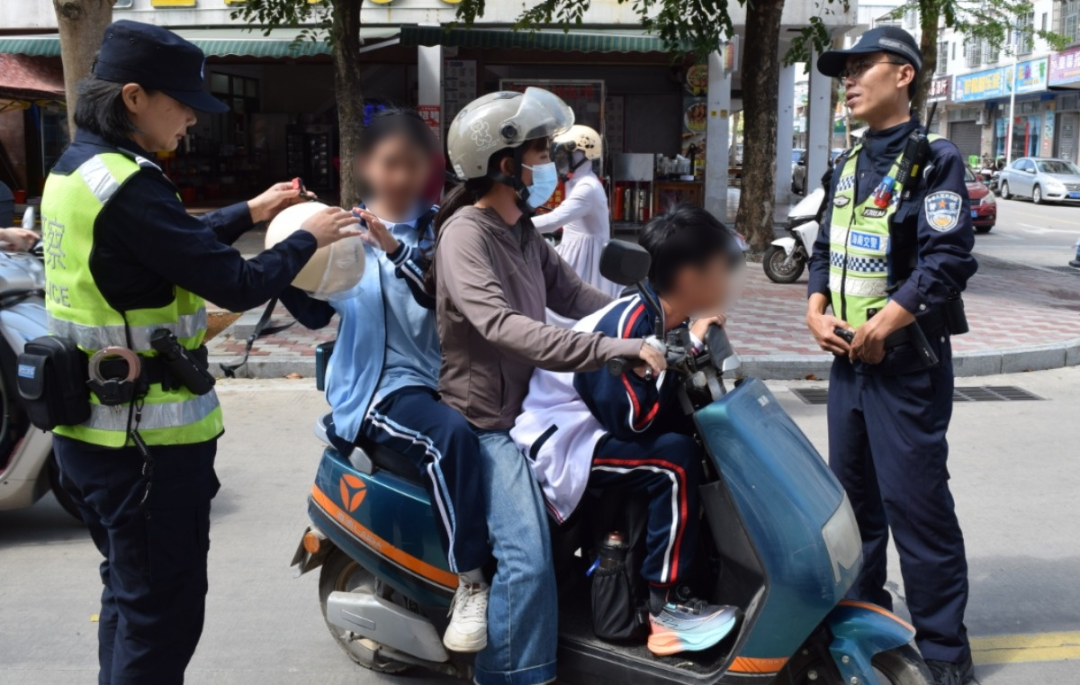 针对上下学高峰时段“道路堵”“车乱行”“人乱行”等问题,琼海公安交警加强对校园周边违停、逆行、横穿马路、骑乘二、三轮车不佩戴安全头盔、逆行、闯红灯以及未成年人违规骑行等各类交通违法行为。同时,进一步规范校园门口机动车、电动自行车停放秩序,通过严管与劝导并举,全力守护学生上下学的“最后一公里”。