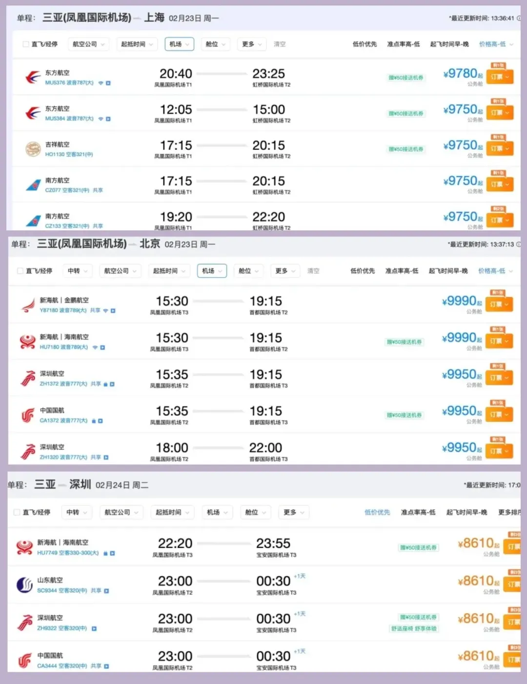 拿着小几百块钱机票上岛的朋友们,看着一万起步的离岛票,简直不敢相信自己的眼睛: