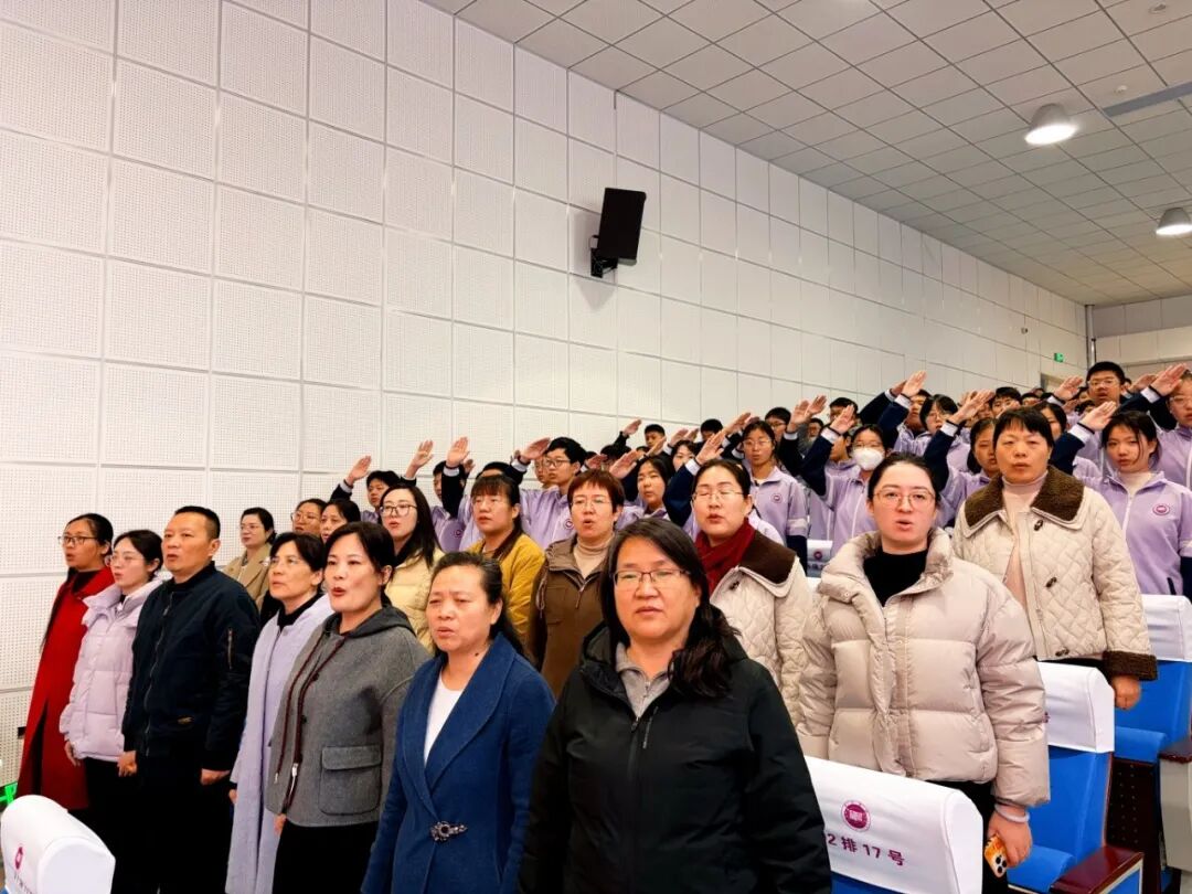 誓言铿锵守初心,匠心育人担使命。赵萌老师率先发出铿锵誓言,全体教师肃立注目、高举右拳,齐声跟读,彰显着文昌教师的责任与担当。此次宣誓既是庄严承诺,更是精神洗礼,全体教师将以誓词为准则,践行校园信念,深耕讲台、陪伴学子成长,为学校教育发展倾尽心力。
