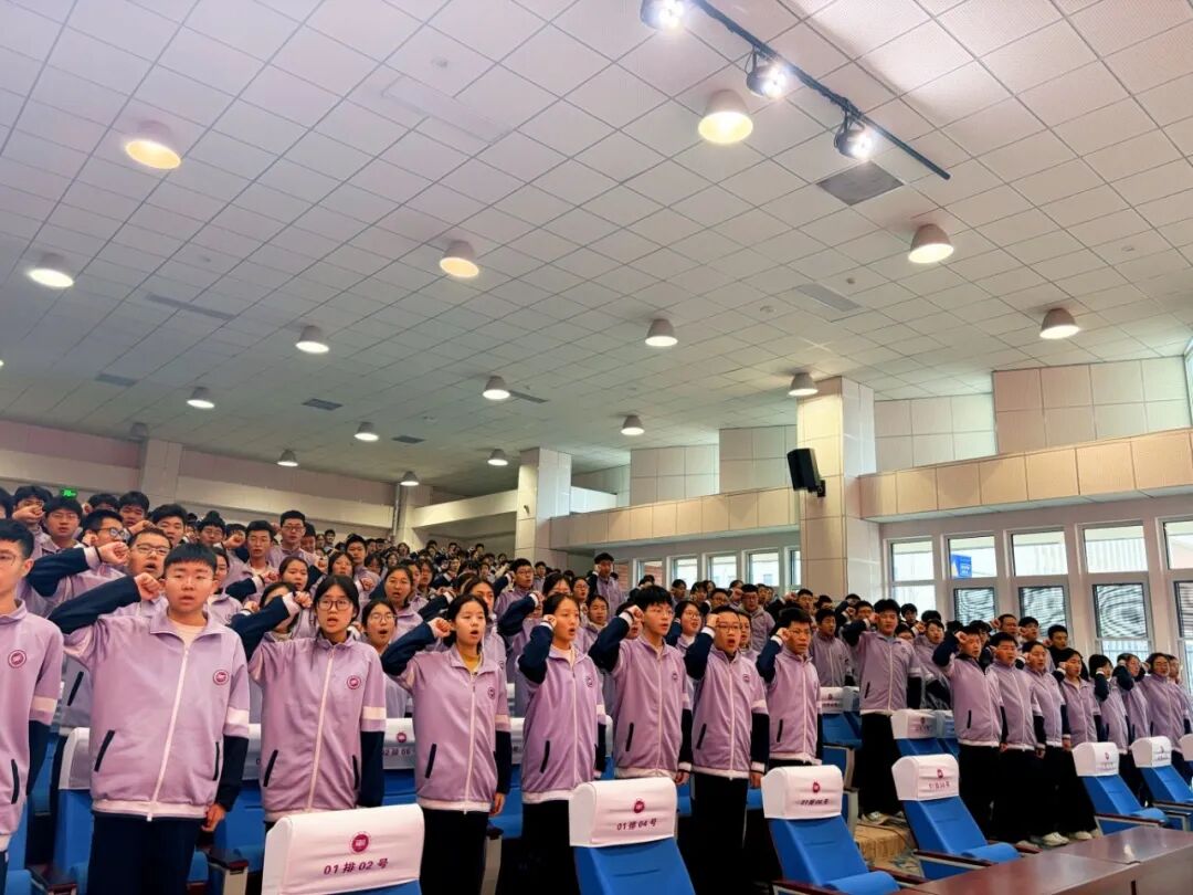 少年有志,国家有望;青春有梦,未来可期。伴随着激昂的号召,全体文昌学子应声起立,在八(3)中队王文成同学的带领下,举起右拳、庄严宣誓,用稚嫩却坚定的声音,诉说着少年担当,许下了不负青春、逐梦前行的郑重承诺。