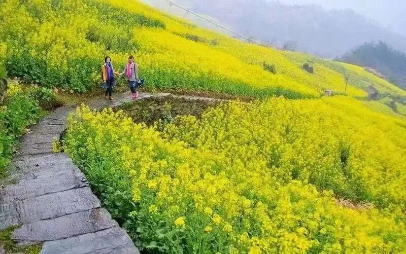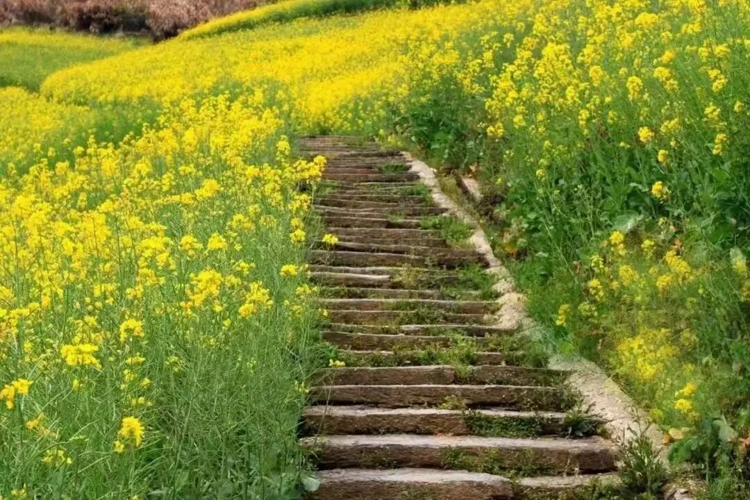 古道不长,贵在穿行于古村花海之中,你可以放慢脚步,在春日的阳光下慢慢感受花海的灿烂,古村的质朴,古道的幽静。