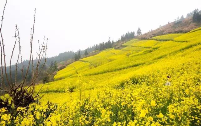 三月份是油菜花开的正旺,古道两侧有才花海是一片连着一片。