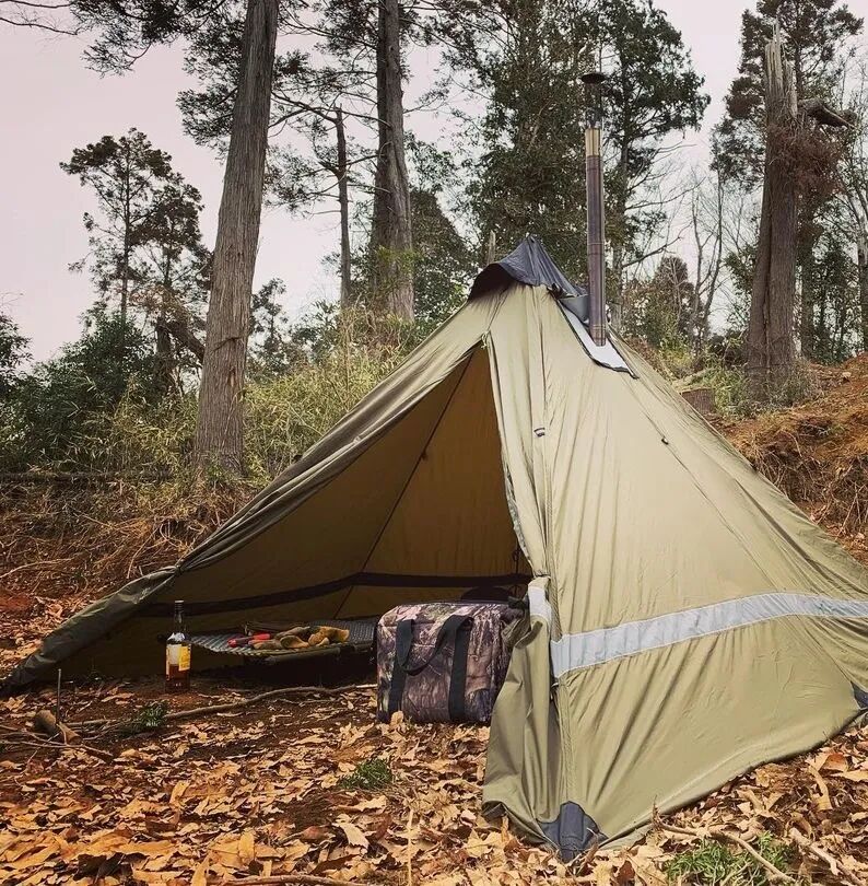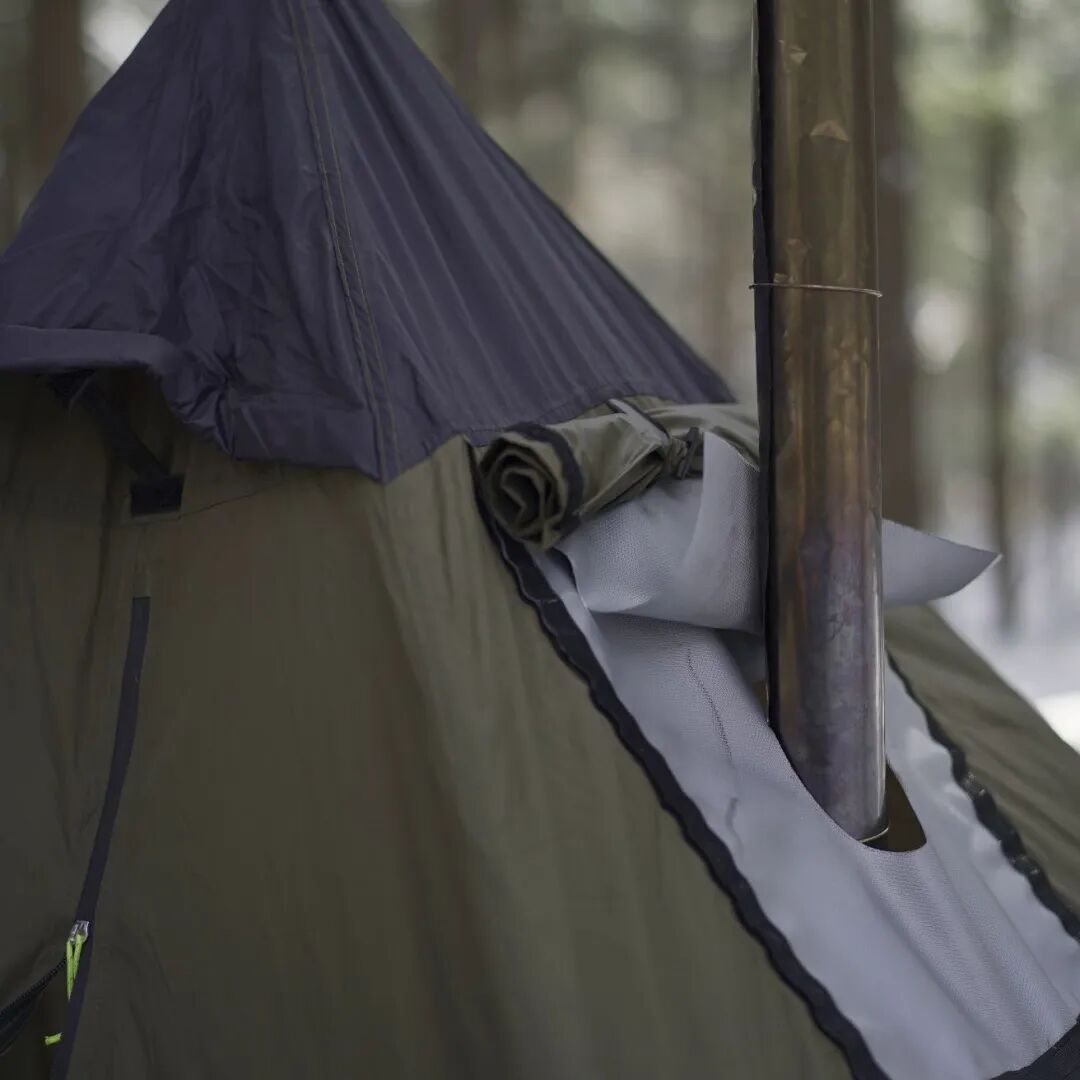 金字塔形结构不仅能在野外有效抗风,低重心的结构也能帮助你抵御恶劣天气。尼龙面料结合折叠撑杆,能很好的控制整体重量,适合背包穿越和野外露营之用。搭配雪裙裙边及柴火炉烟囱口设计,方便您在冬季依然可以在野外使用。