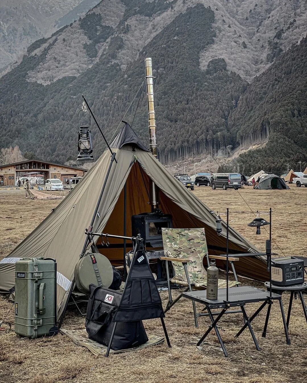 其他:配有烟囱口,可在冬季搭配柴火炉使用,柴火路烟囱口选择10cm或更小尺寸的便携式木材燃烧器。顶部配有照明挂钩。