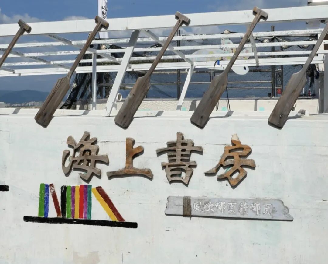 一座漂浮在海上的书屋,可以静静看书、听海声、寄明信片。