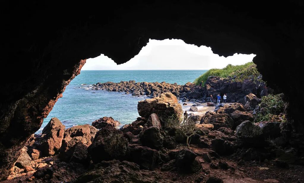 【峨蔓火山海岸地质公园】一半清凉的海水,一半火红的山岩,水与火交融,红与蓝相映,火山海岸给人强烈的视觉冲击。来到峨蔓火山海岸,仿佛回到时空的深处,自然的奇伟与沧桑都定格在这海角天隅。