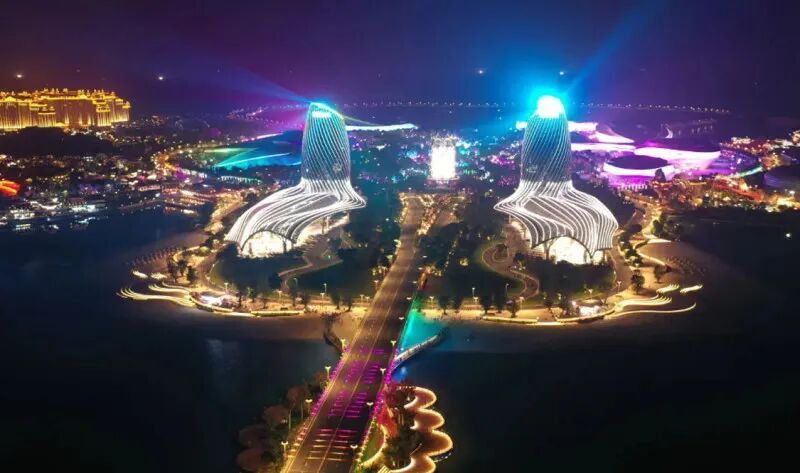 中国的迪拜—海花岛,由三个独立的离岸式岛屿组成,规划平面形态为盛开在海中的三朵花,故取名为“海花岛”,是由恒大集团投资1600亿开发建设。岛上拥有国际会议会展中心、博物馆群、童话世界、水上乐园、海洋世界、国际购物中心、现代酒店群、五国温泉城、华夏影视基地等28大业态,由600多名世界著名的建筑设计大师设计。海花岛以1.2万亩超大体量的花型人工岛荣获由世界纪录协会颁发的“全球最大花型人工岛”认证。