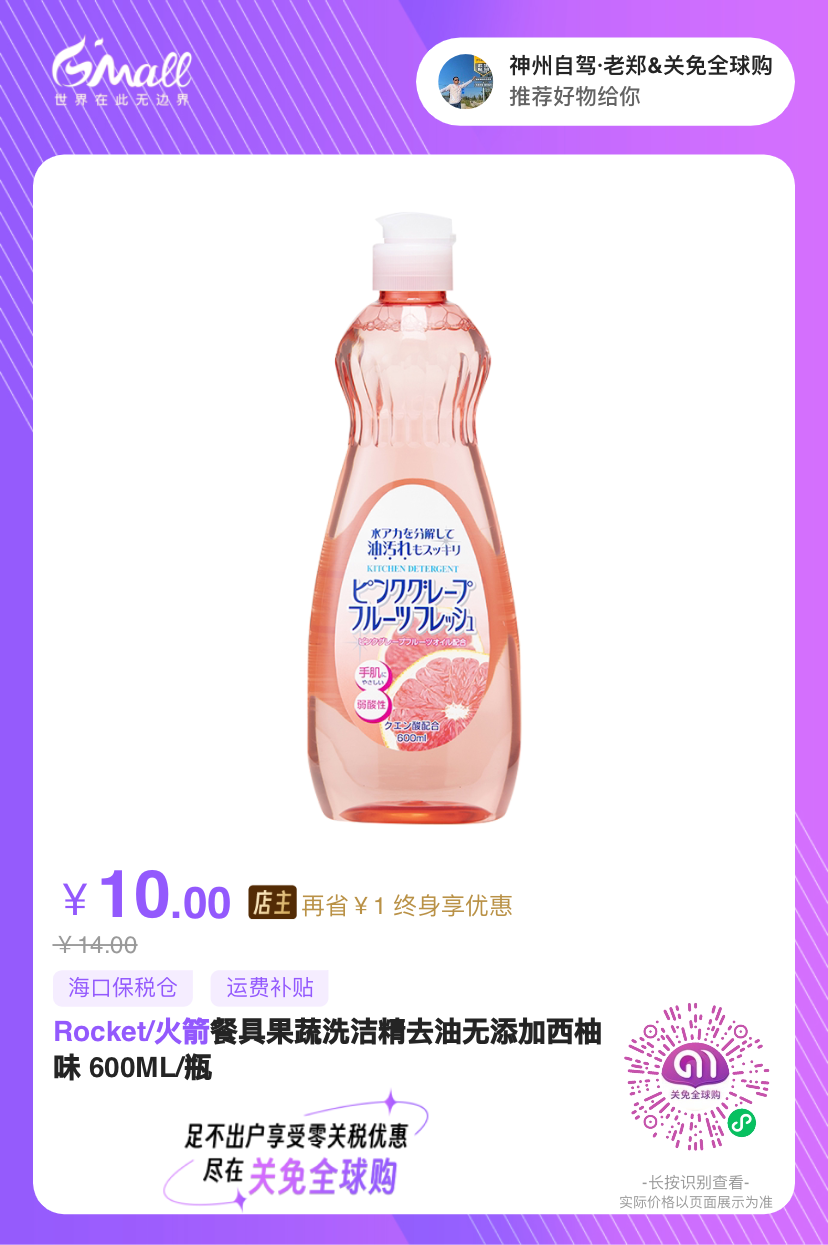 日本火箭牌洗洁精,强效去油,快速分解顽固污渍。易漂洗更省水,温和护手配方,餐具光亮如新。日本家居清洁优选,高效环保,口碑之选。