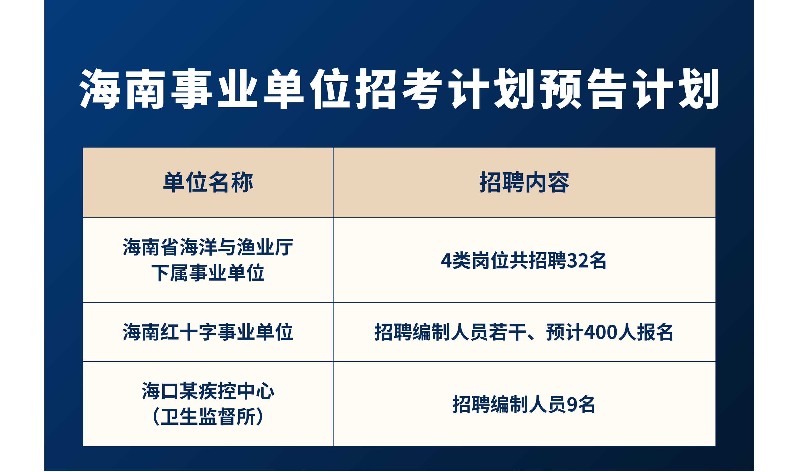 因多年运营拥有50万粉丝的招聘公众号经验,我可以提前获得海南各个事业单位、银行系统、医疗卫生、教育系统、知名央国企、以及编外好岗(如辅警、政务中心、网格员)等高薪稳定岗位的招聘信息、招聘要求和招聘流程、内部笔试面试资源并通过多年的打交道也结识了内部的重要人脉资源来帮助过不少粉丝和读者找到了自己期盼的工作。