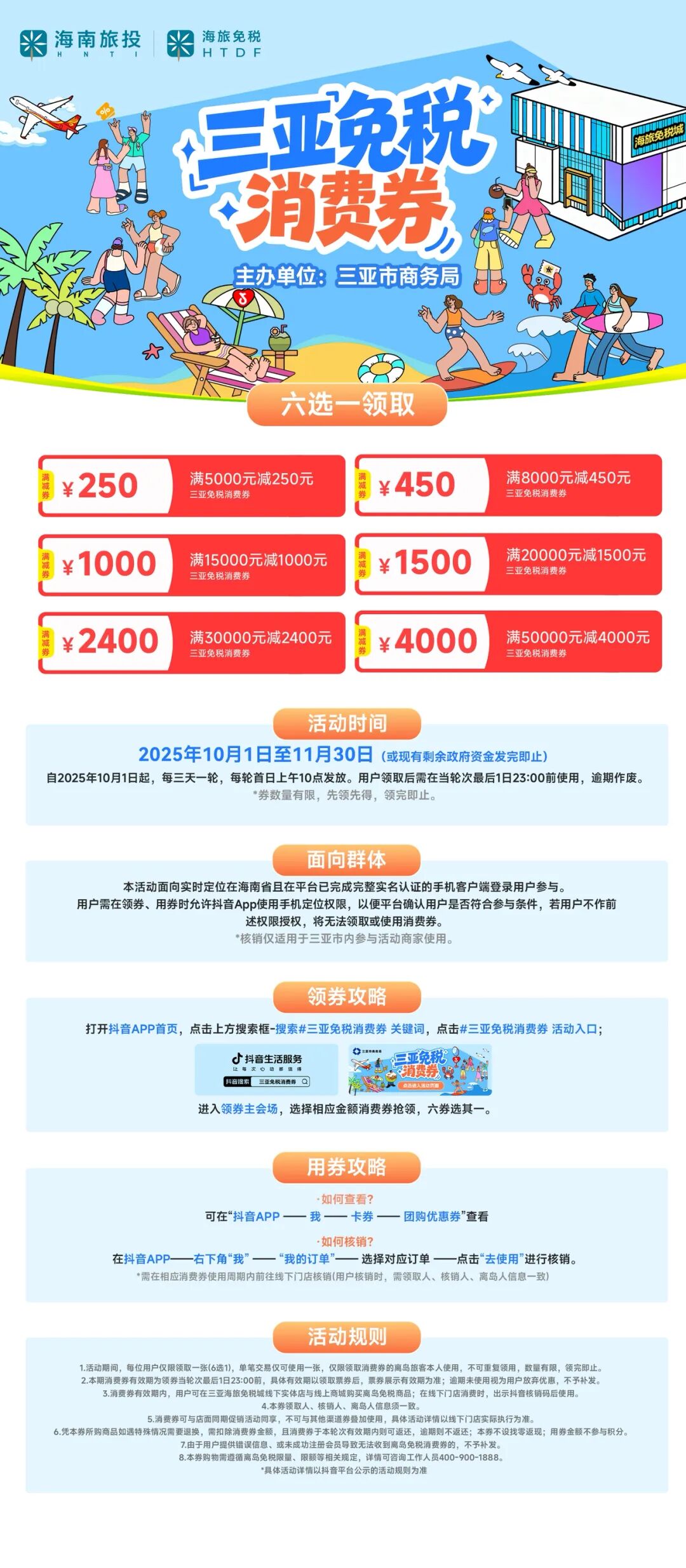 明早10:00锁定抖音!三亚免税消费券开抢,手慢无! ...
