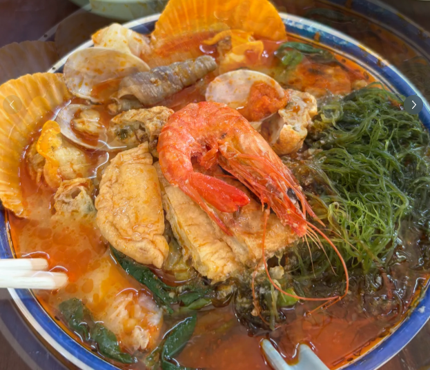 本地人心目中的正宗粉汤,汤底用白萝卜大骨熬制,又鲜又纯,每颗蛋都是溏心蛋,蛋黄液流出来的时候溶在高汤里,裹在每一口粉上面,好吃!吃完一碗粉,本地人一天的生活才能愉快的开始。第三名四川小胡子海鲜海棠湾店