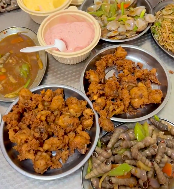 老牌网红小吃店了,经常排长队。招牌是炸鸡、海鲜粥、青嘴螺,老板是广东人,海鲜粥有广东生滚粥的风味,可以放冷点再吃,但是炸鸡要趁热吃。青嘴螺要先吸一下尾部,让螺内形成真空,再吸头部,这样就很容易吸出螺肉了。第四名阿三靓汤