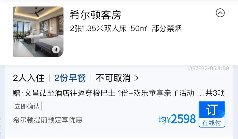 △文昌鲁能希尔顿度假酒店 携程参考价格(上期火箭发射期间查询价格参考)