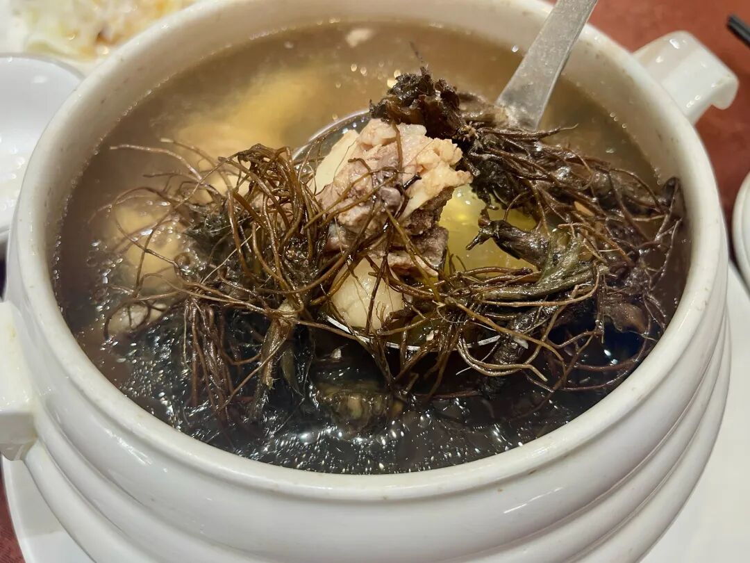 9、地胆头鸡汤:沿海渔民为应对酷热和湿气,将地胆头(一种中草药)与鸡肉炖煮,制成药膳汤品。汤色清亮,味道鲜美,兼具解暑祛湿功效。