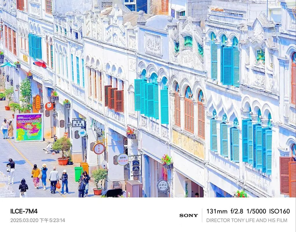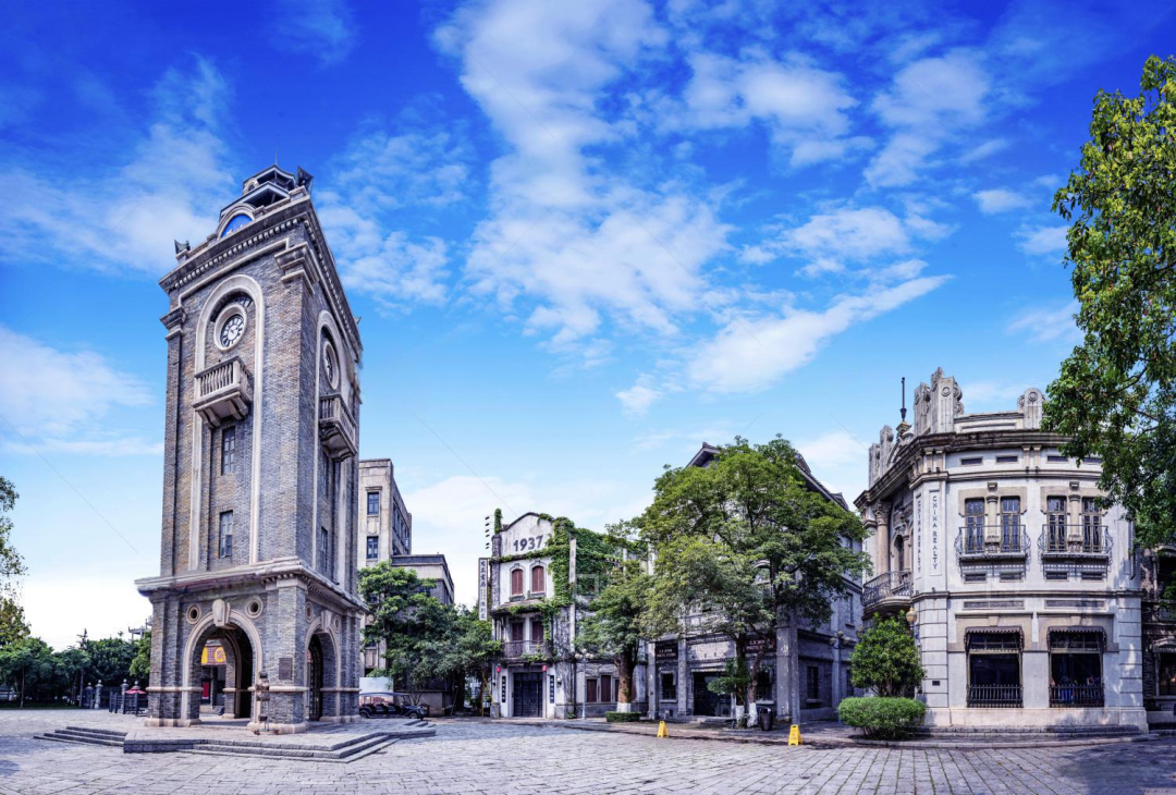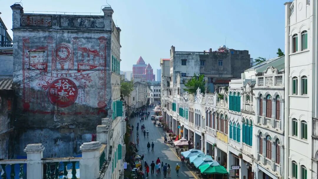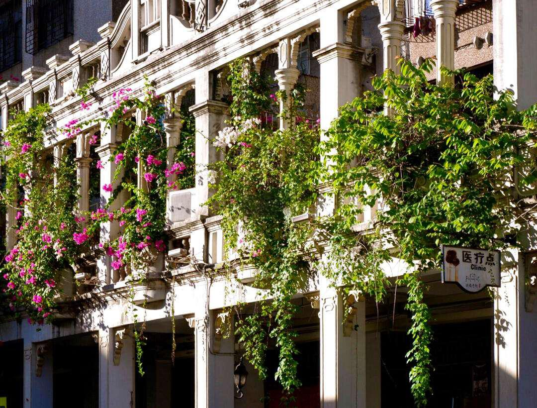 标志性建筑:中山路57号骑楼的窗户框住钟楼尖顶,形成天然取景框。