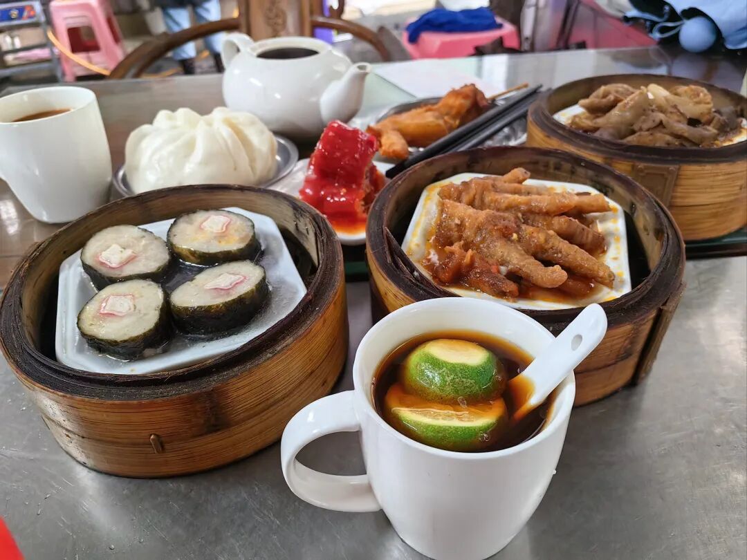 2、老爸茶:海口人的早茶文化,粤式点心(虾饺、凤爪、流沙包)搭配热茶,茶楼里推车叫卖的烟火气构成市井画卷。