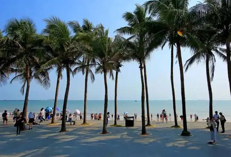 特色:假日海滩长达6公里,左沿是葱翠的林麻黄林带,其间错落着度假村、宾馆、游乐场等;右沿是碧波万顷的琼州海峡,海面船只穿梭,犁银溅玉。
