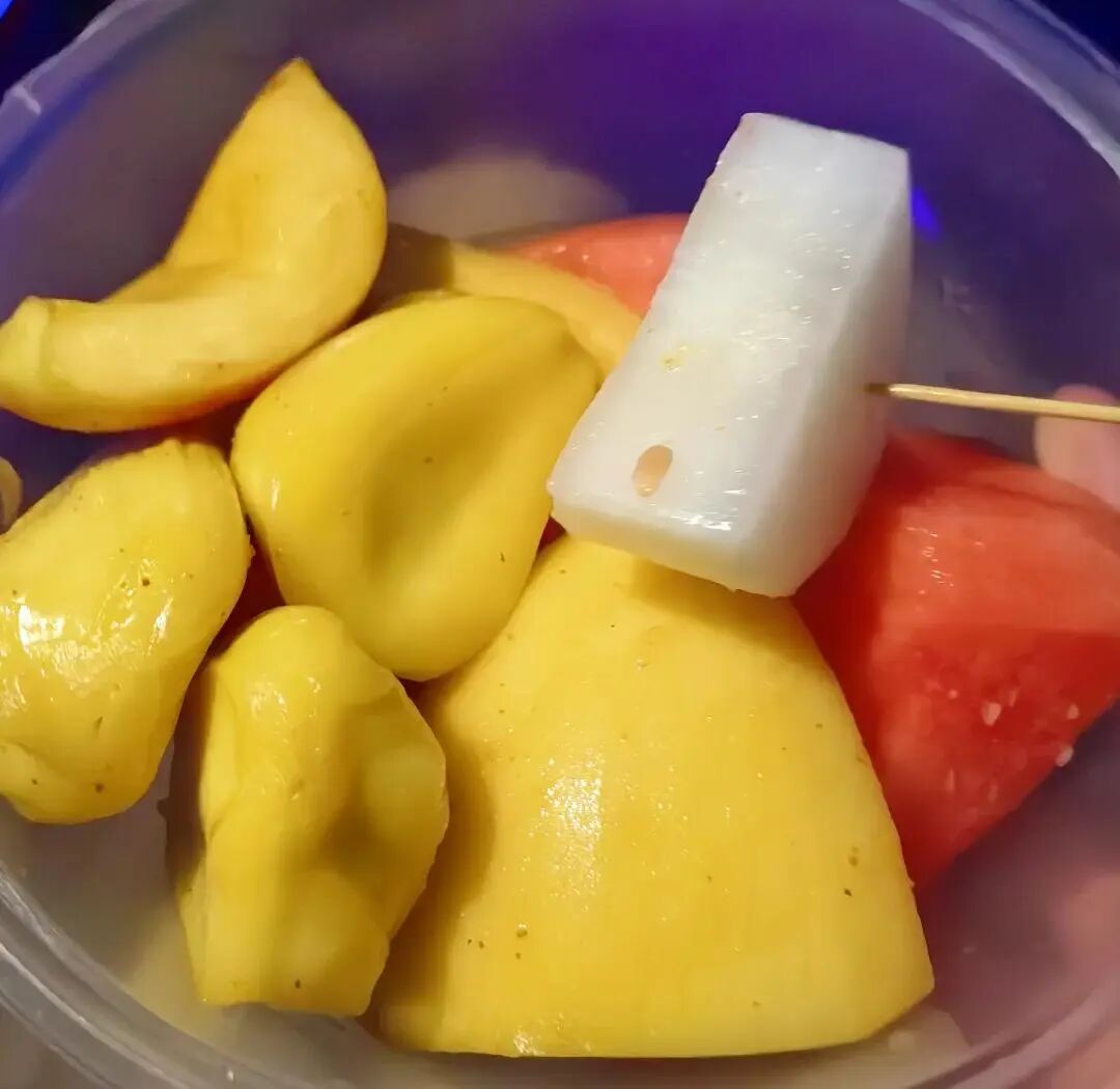 8、水果辣椒盐:芒果、菠萝撒上辣椒盐,酸甜咸辣交织,颠覆味蕾认知。