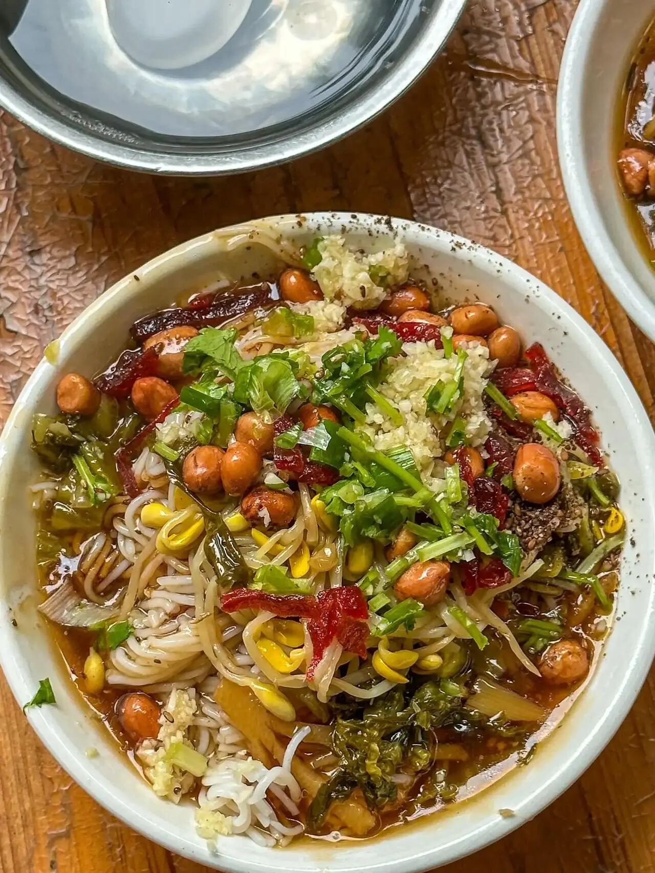 1、海南粉:海南省非物质文化遗产,细滑米粉淋上浓稠卤汁,搭配酸菜、花生、牛肉干、豆芽等十余种配料,嗦粉后加一勺海螺汤提鲜。