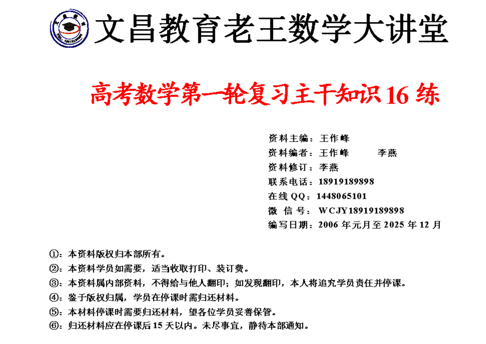 文昌教育-高考数学第一轮复习主干知识16练 ...