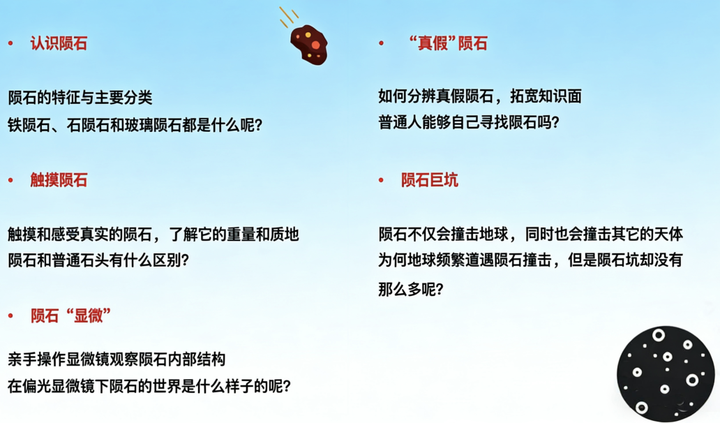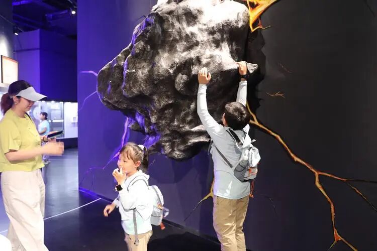 除了参观,了解陨石,还有非常棒的互动体验:通过全息影像了解陨石形成,手摸陨石,探究陨石内部的奥秘,VR探秘,AI星际问答等等。