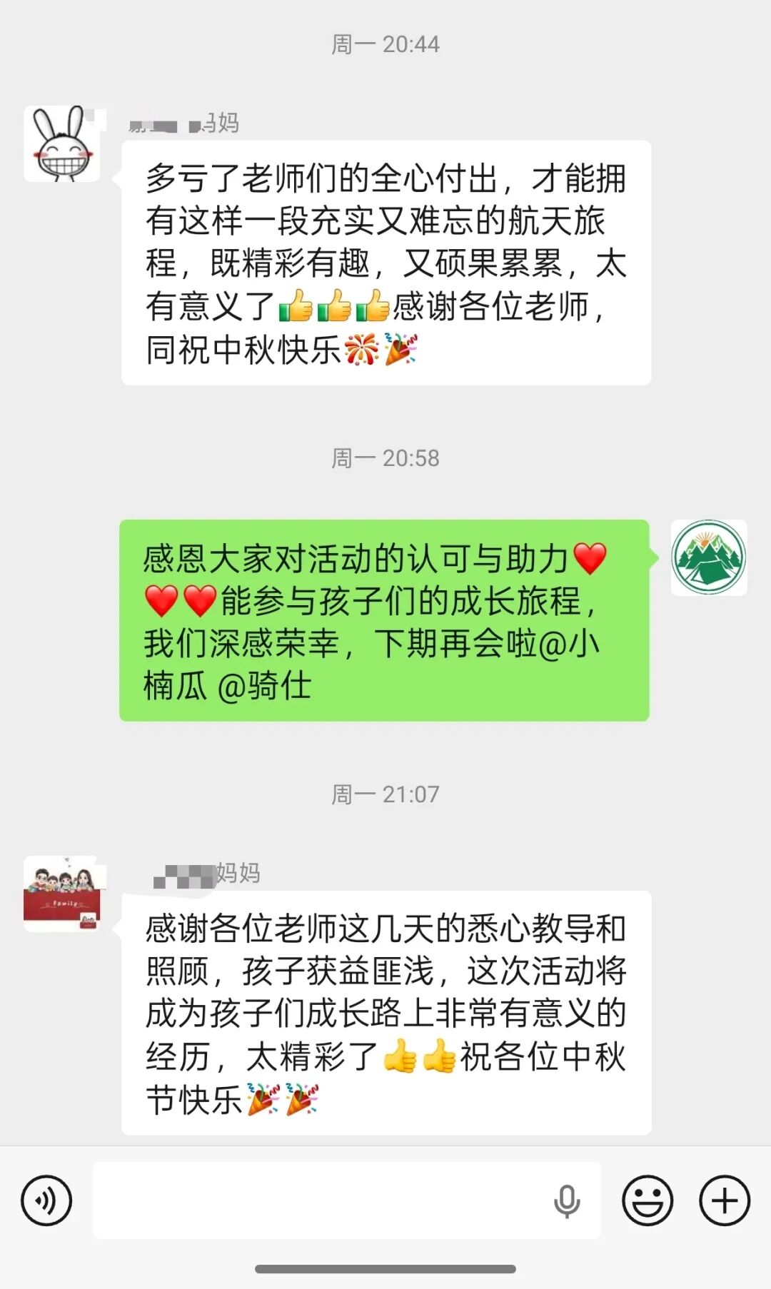 “期待下次再同行”、“保持对星辰的好奇”,当研学结束,热爱并未散场。这些好评,是孩子们种下的航天种子,也是我们继续奔赴星辰大海的动力——因为相信,每一次仰望、每一回探索,都在让“航天梦”愈发清晰滚烫🚀