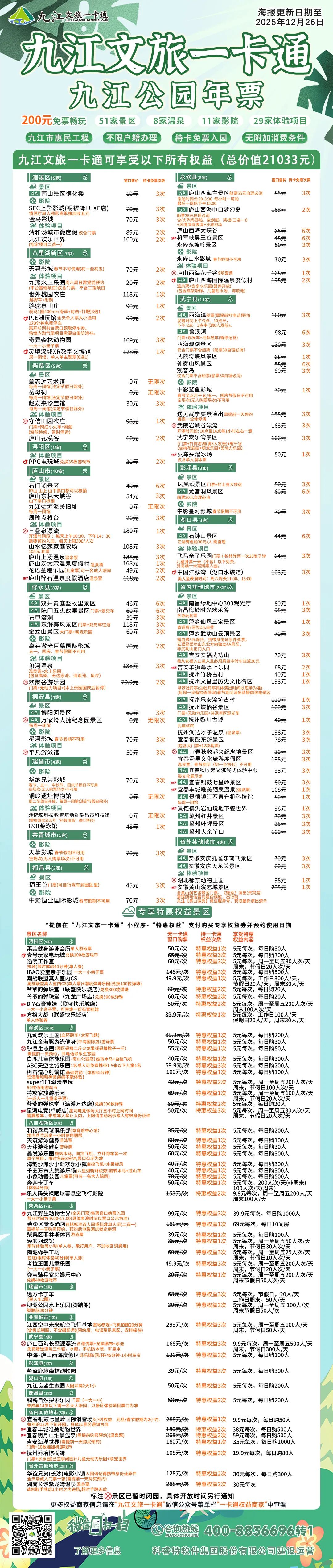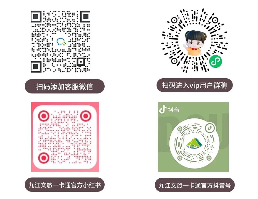 温馨提醒:建议出游前,提前致电景区/项目,且随时关注“九江文旅一卡通”官方公众号以及用户会员群内消息!
