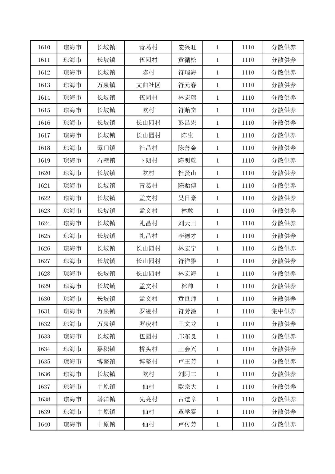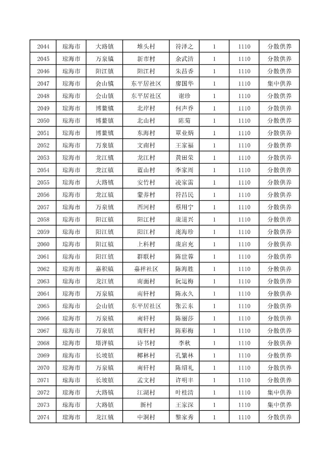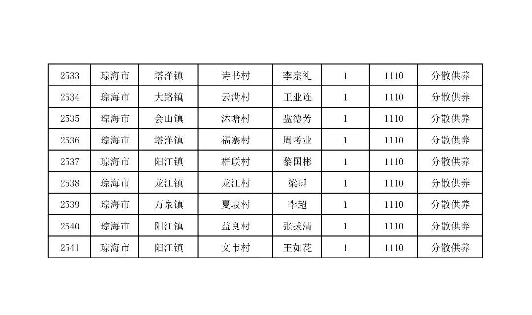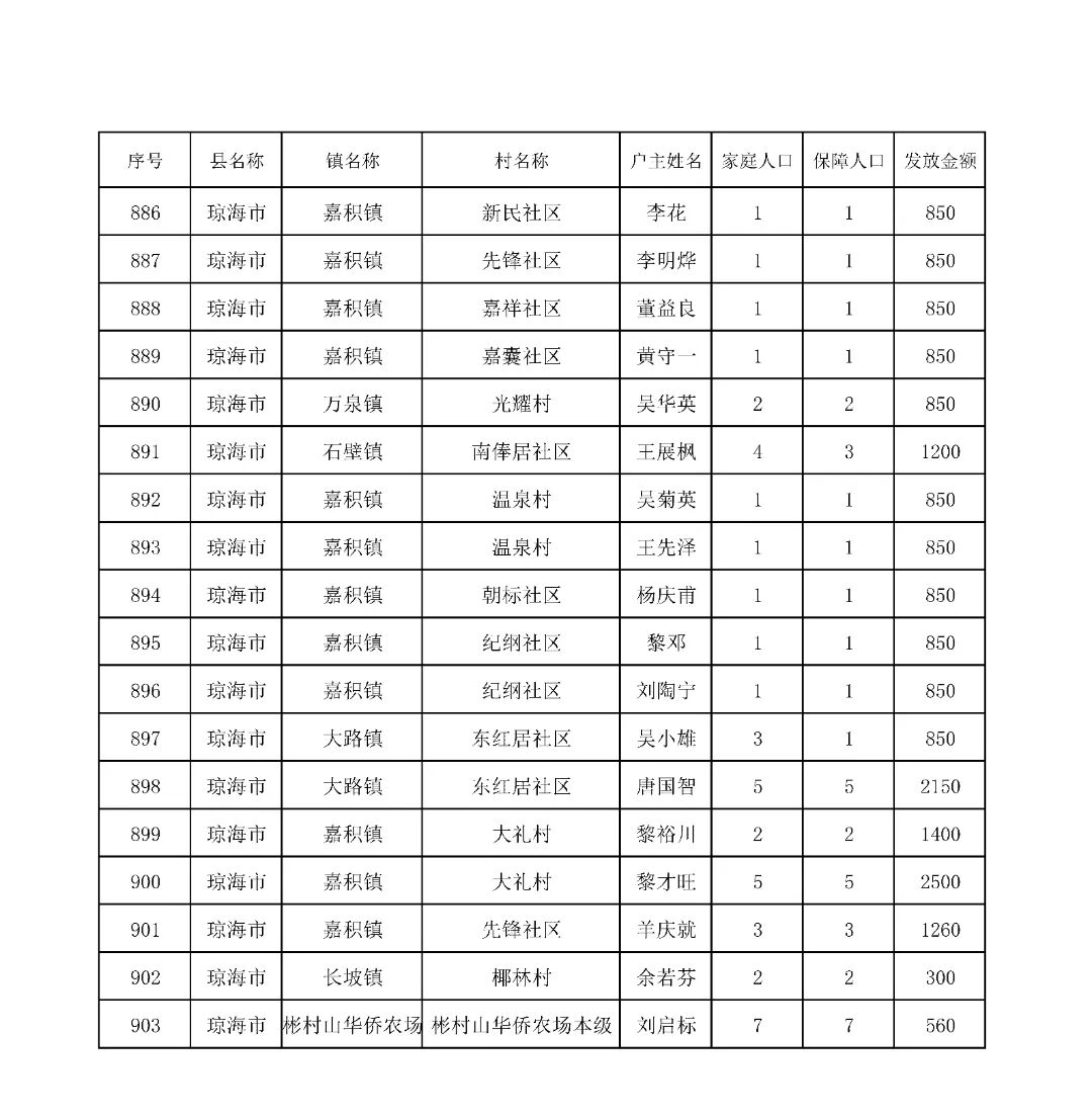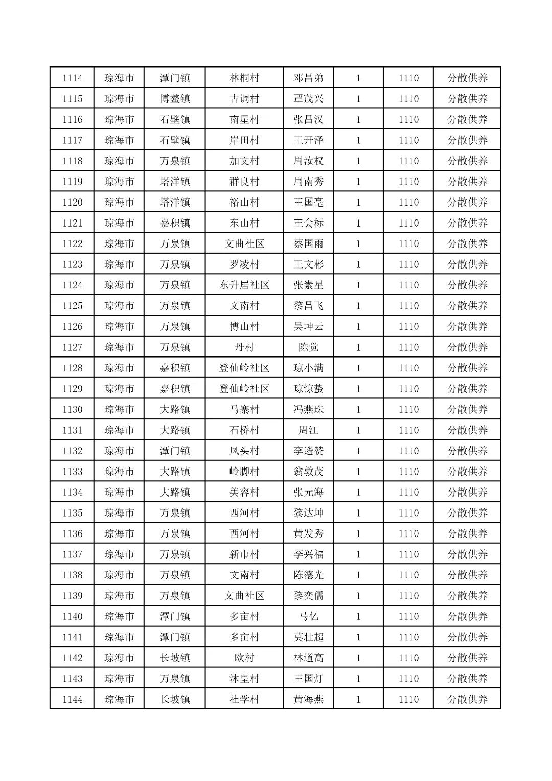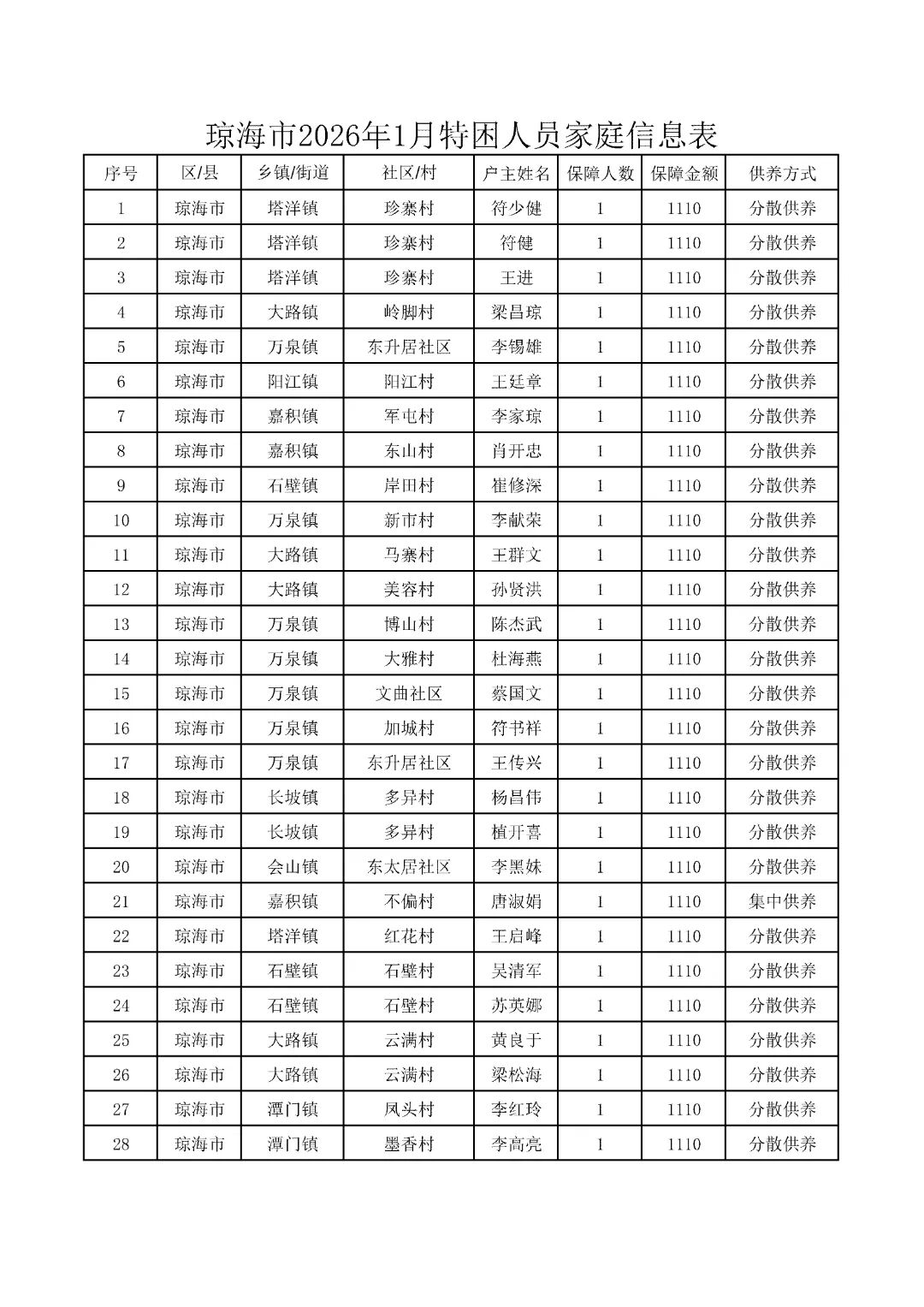 琼海市 2026年1月份城乡低保、特困人员长期公示 ...