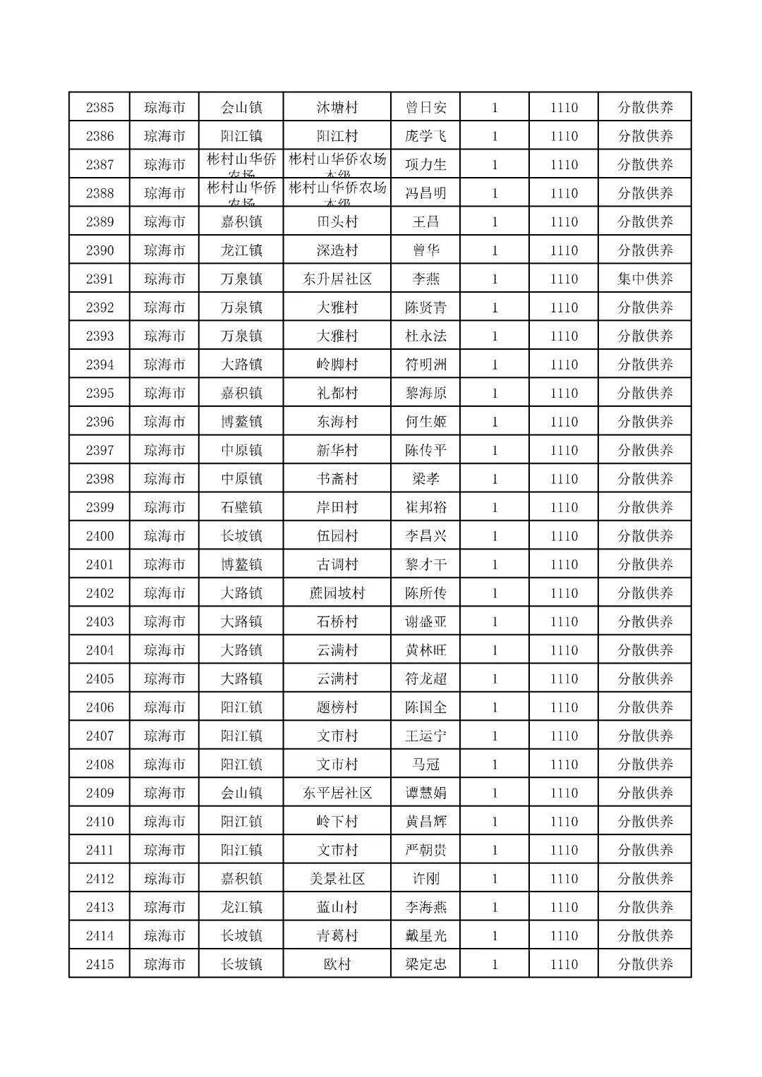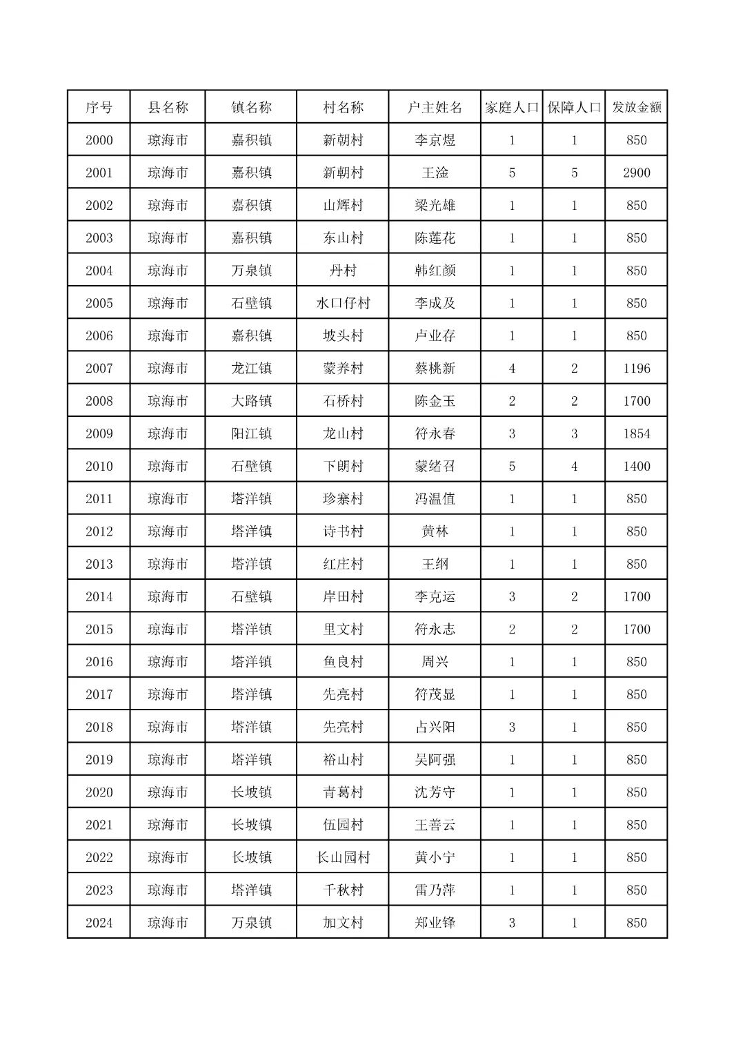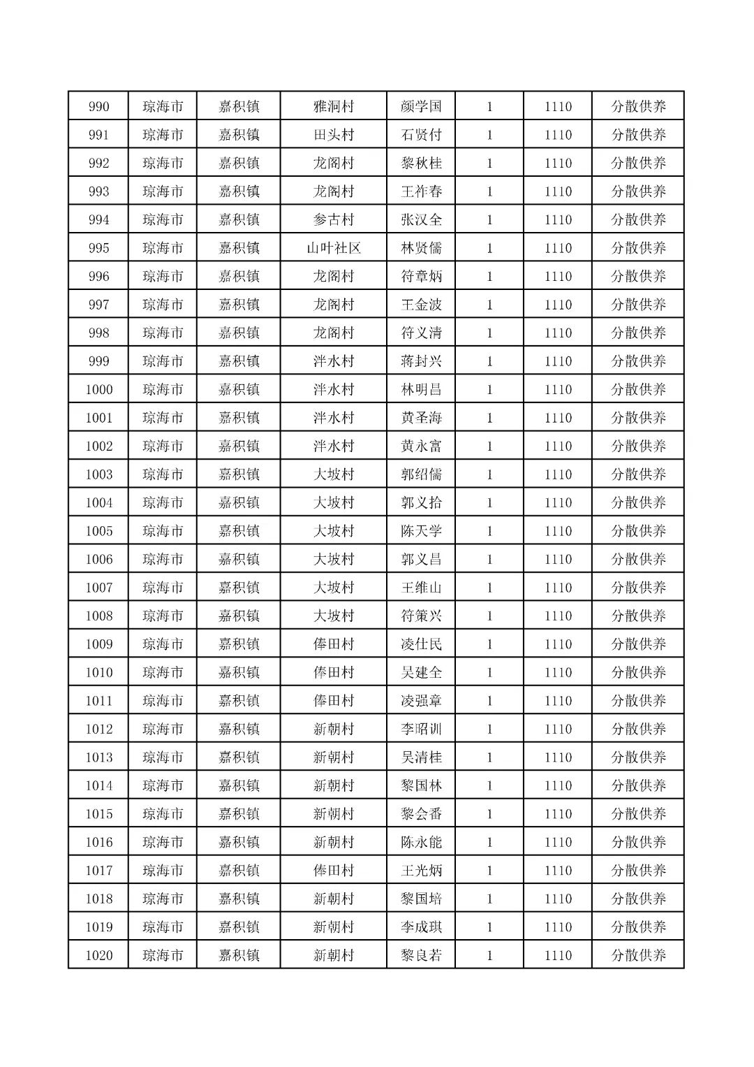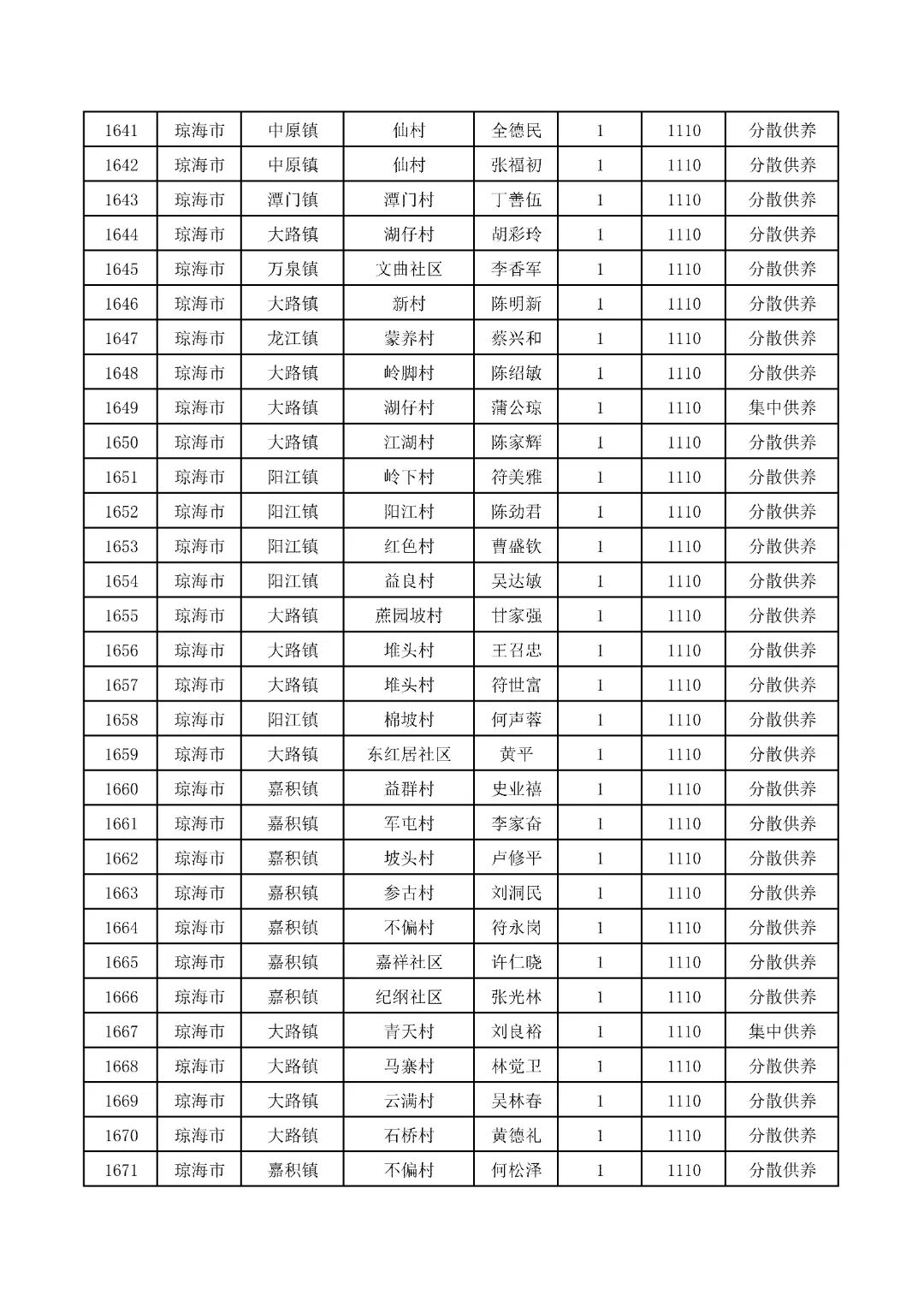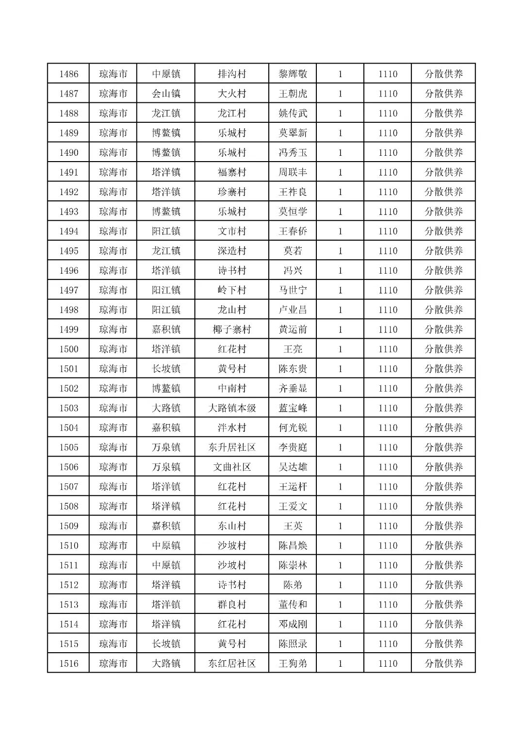 琼海市 2026年1月份城乡低保、特困人员长期公示 ...