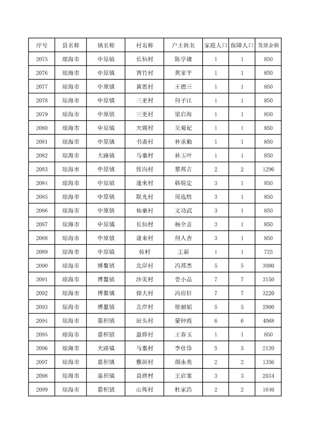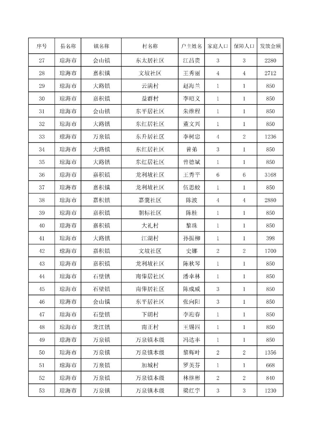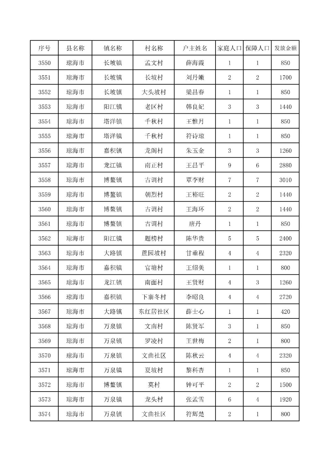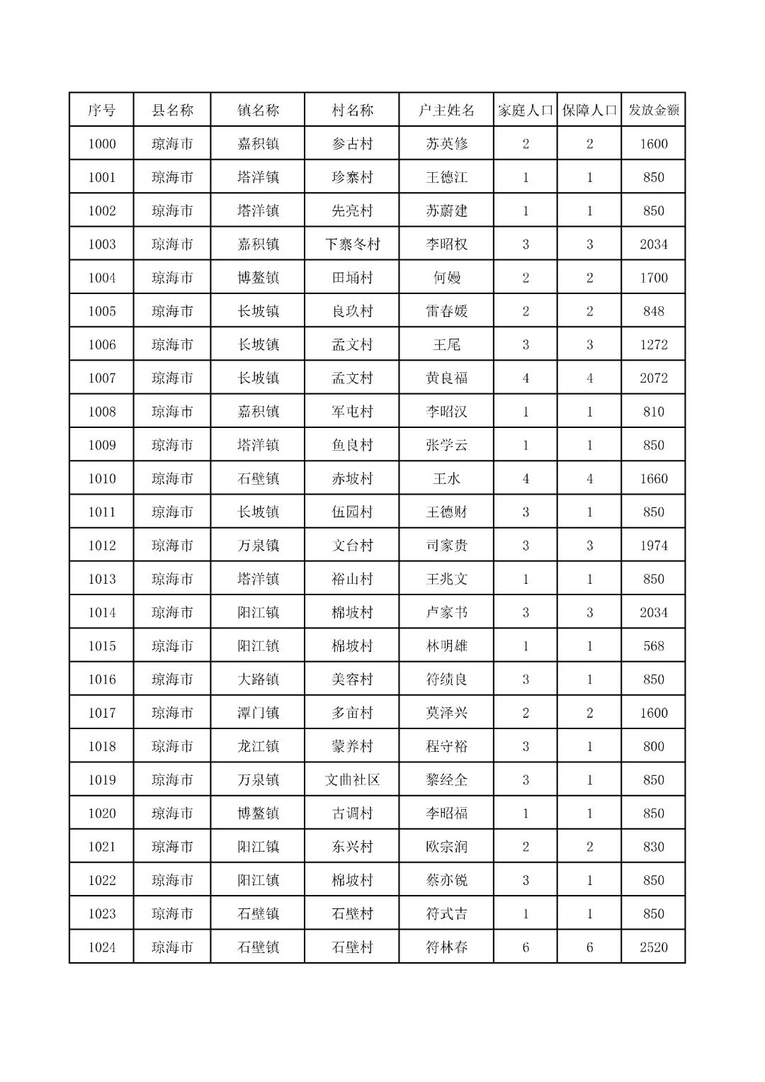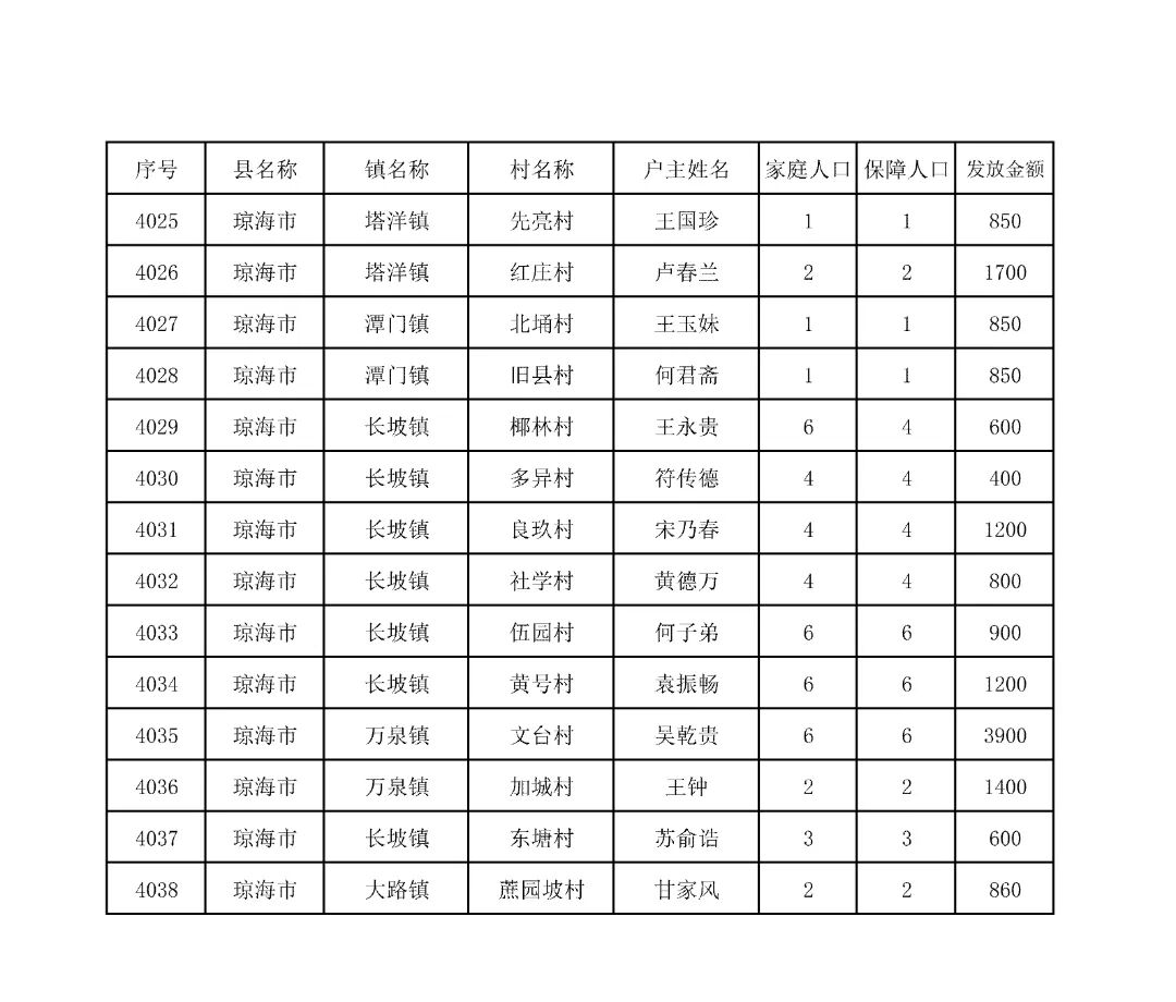 琼海市 2026年1月份城乡低保、特困人员长期公示 ...