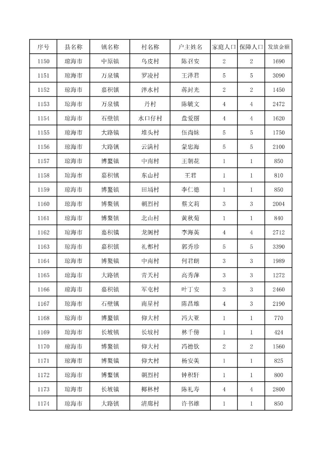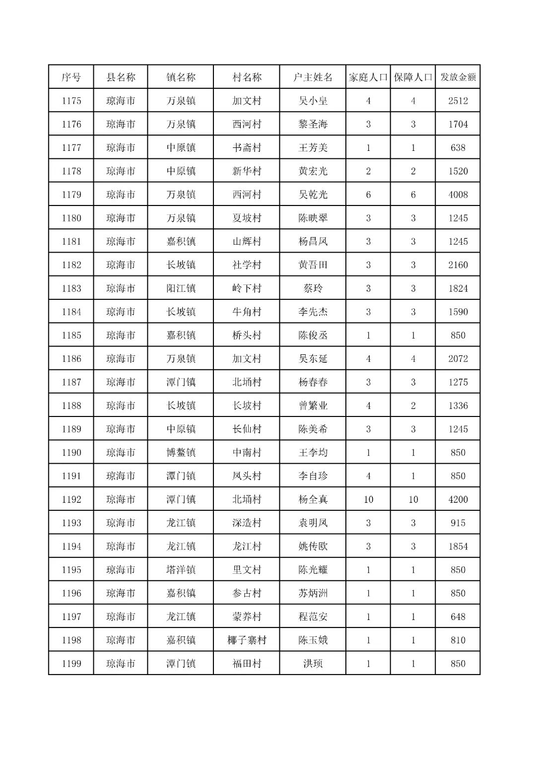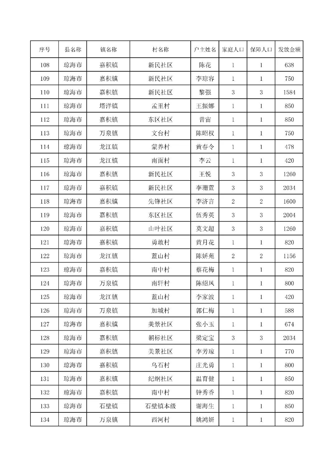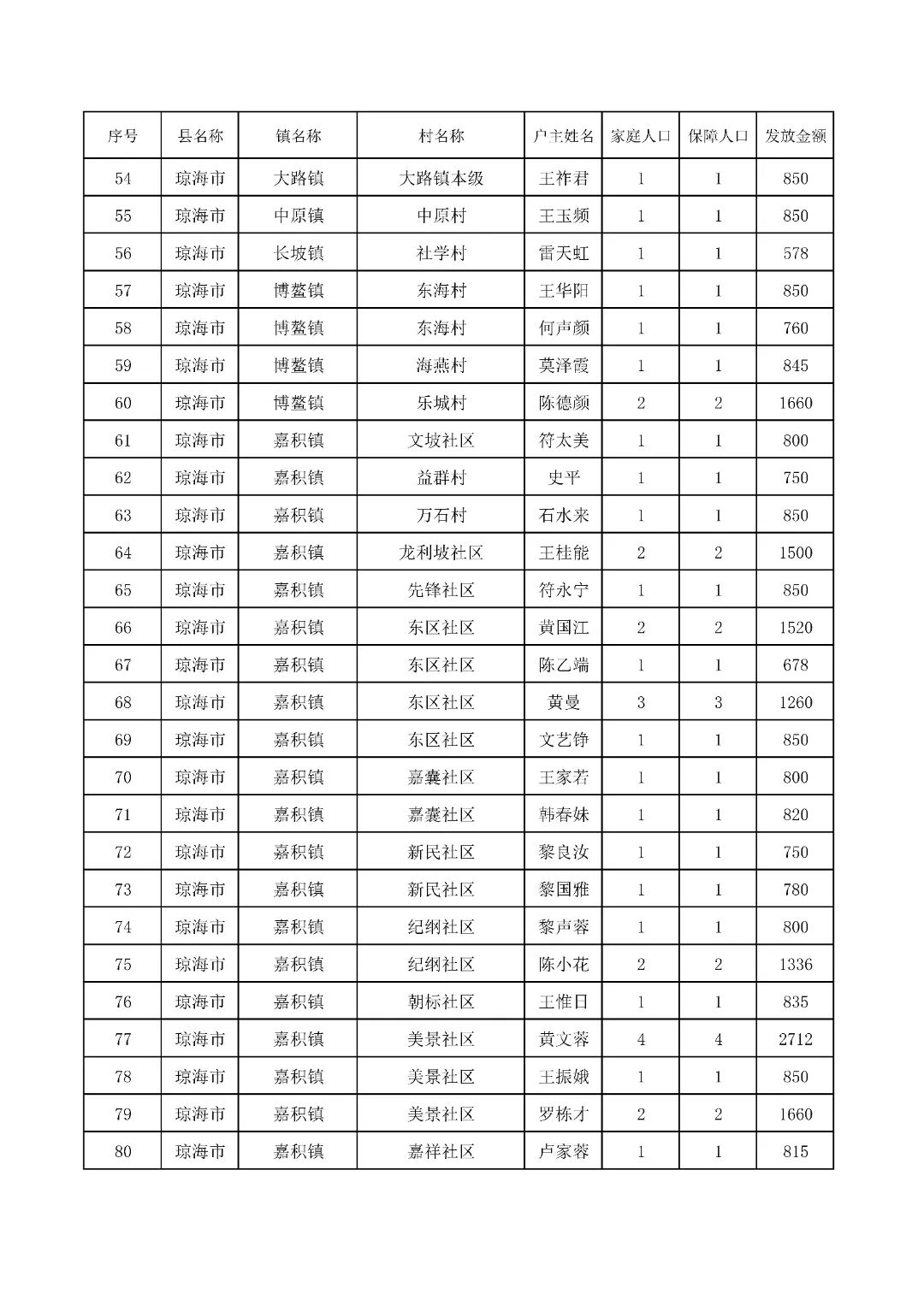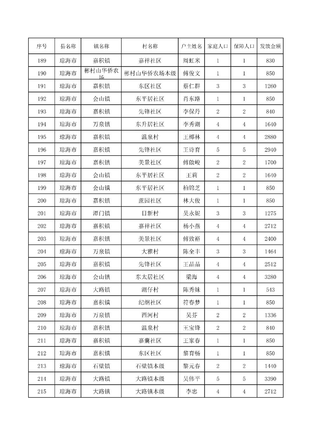 琼海市 2026年1月份城乡低保、特困人员长期公示 ...